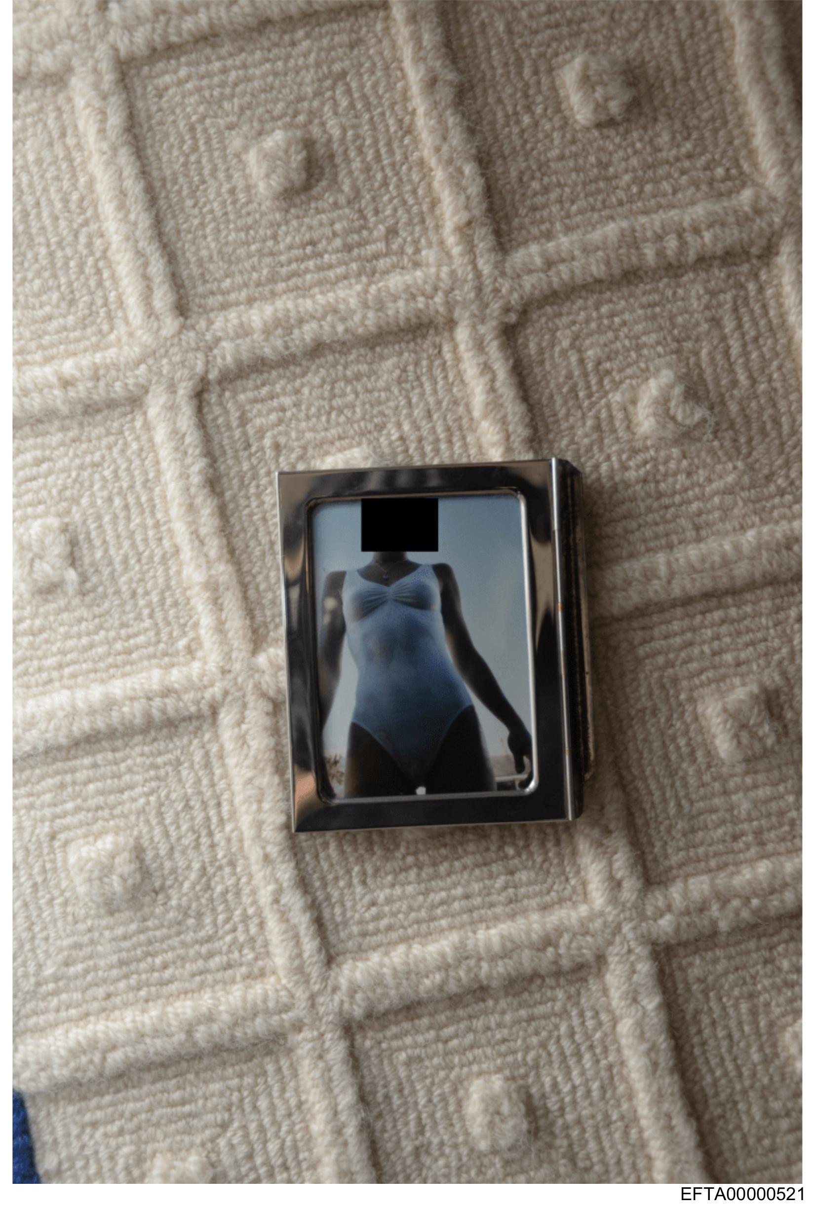 The image shows a small rectangular object with a photo placed on top of it.
