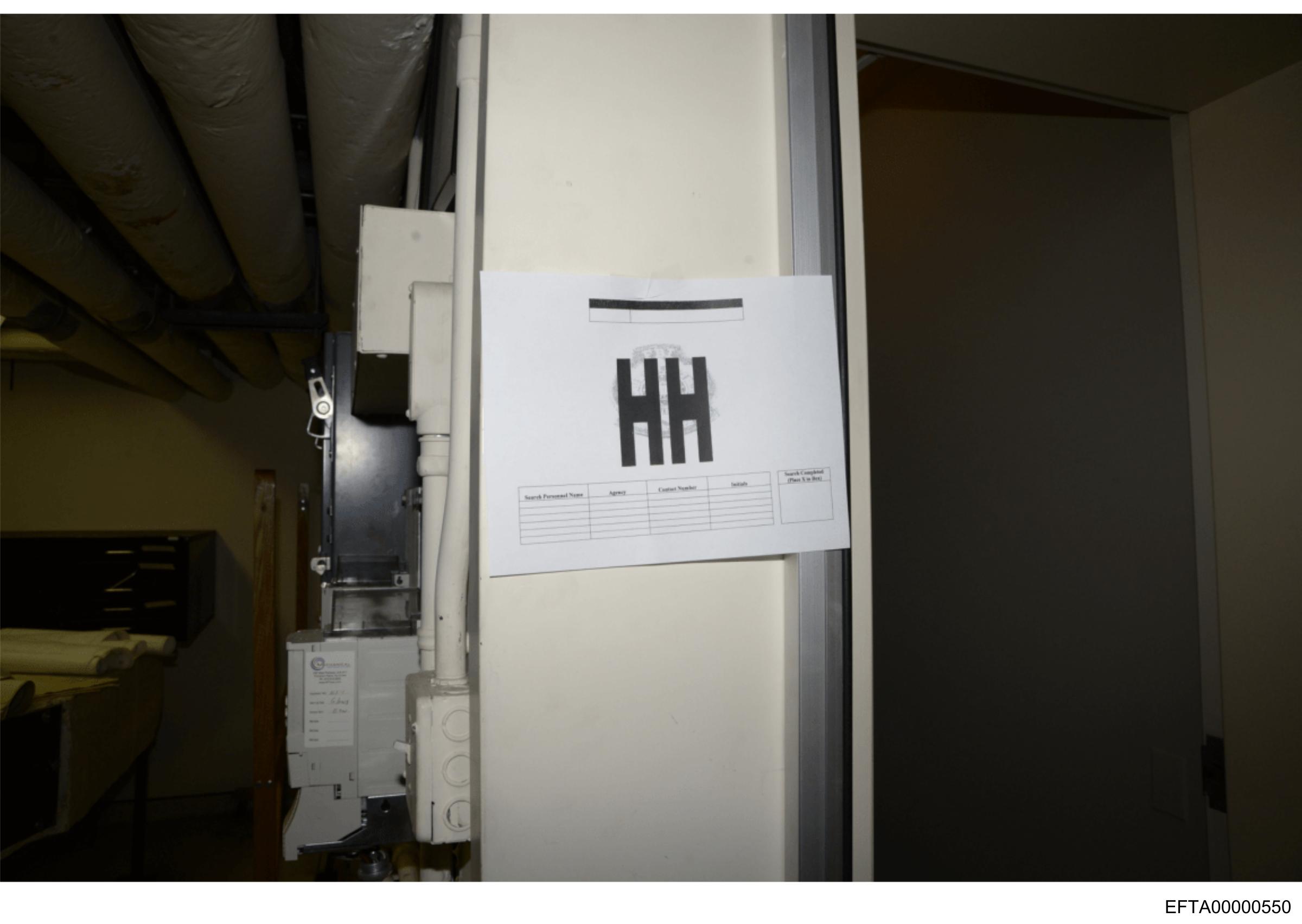 The image depicts an indoor setting with a piece of paper attached to what appears to be a whiteboard. The paper has printed text on it, but the resolution is too low to read the content clearly. The environment looks like a storage or workshop area, as indicated by the presence of shelves and items in the background that are not distinctly identifiable due to the image's quality. On the bottom right corner, there is an overlaid text or watermark that says "EXIF," which suggests some form of metadata associated with the photo, commonly found on digital images.