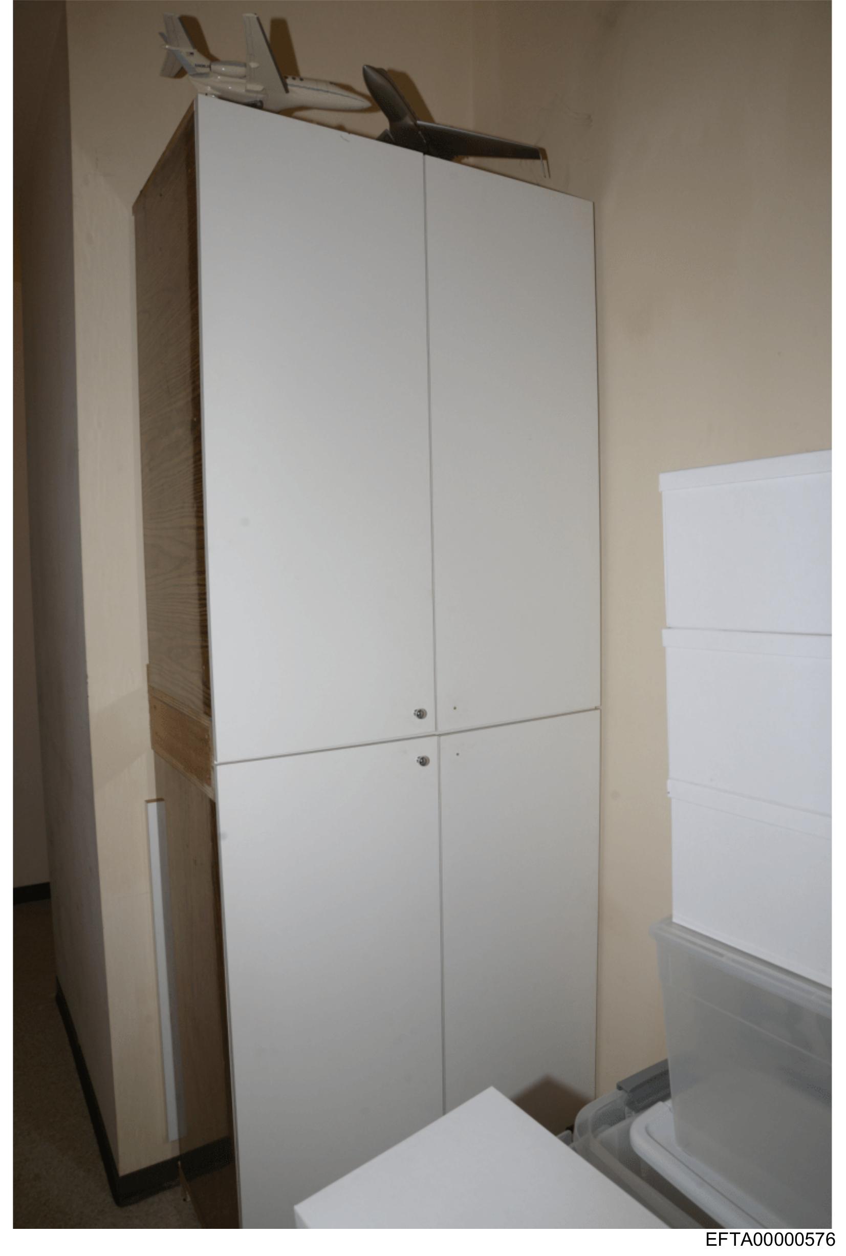 The image depicts an indoor setting with a large refrigerator or freezer unit situated against a wall.
