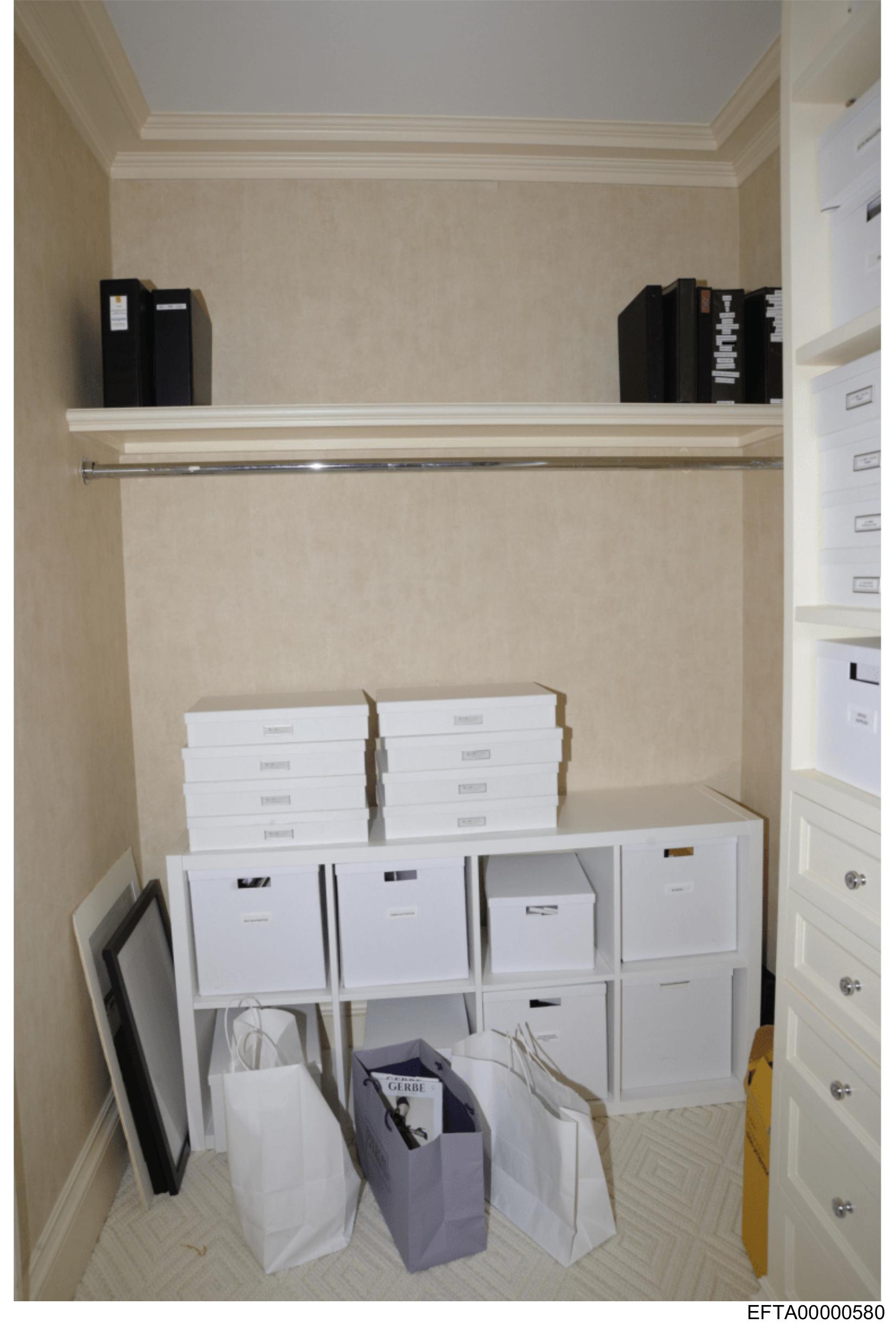 The image shows an interior space that appears to be a storage area or possibly a room being used for organizing items.