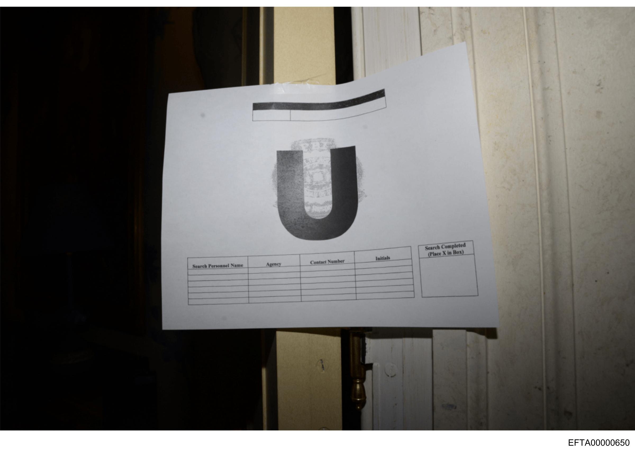 The image shows a close-up of a paper sign with the letter "U" prominently displayed at the top center.