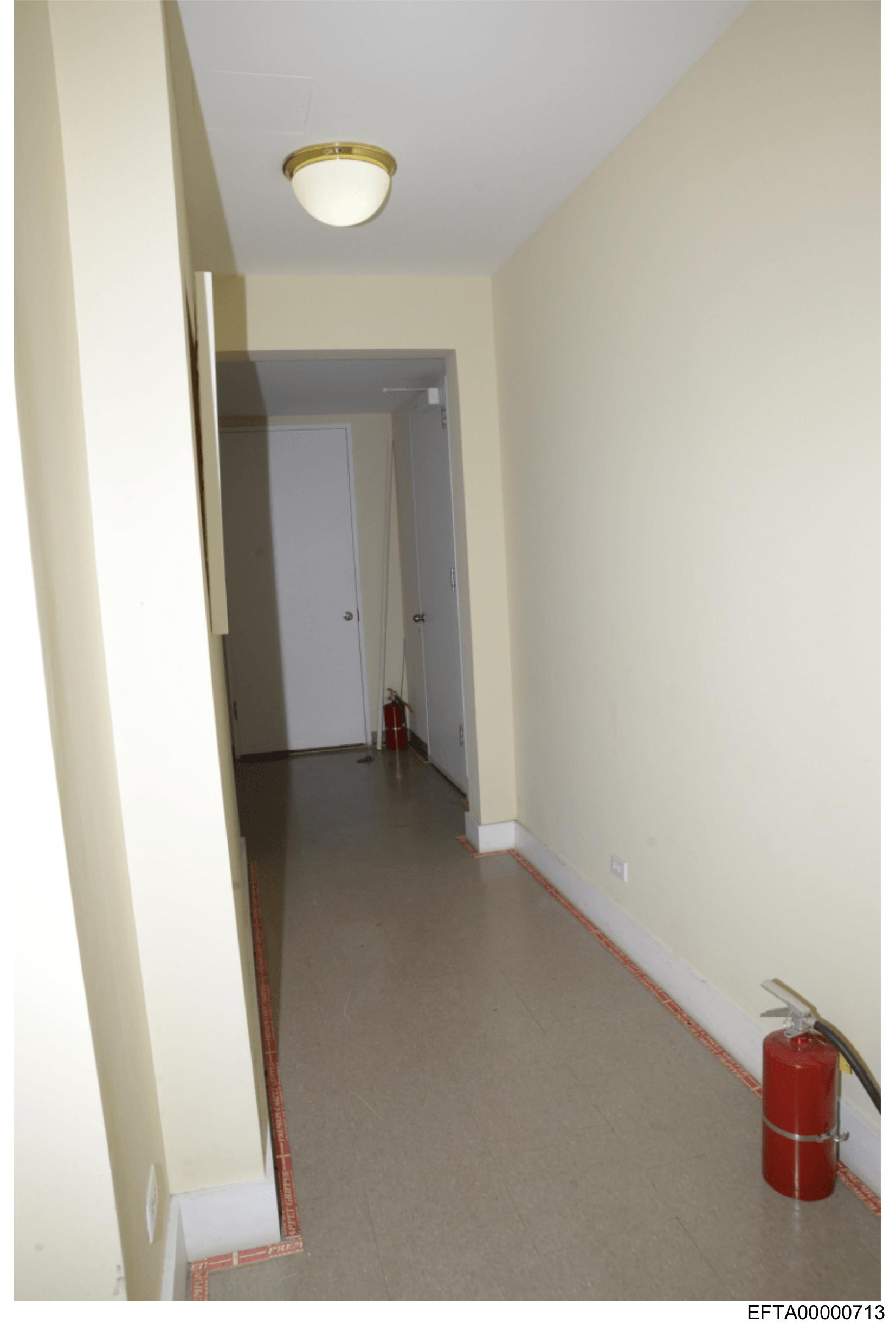 The image shows a hallway that appears to be in the process of renovation or repair work.