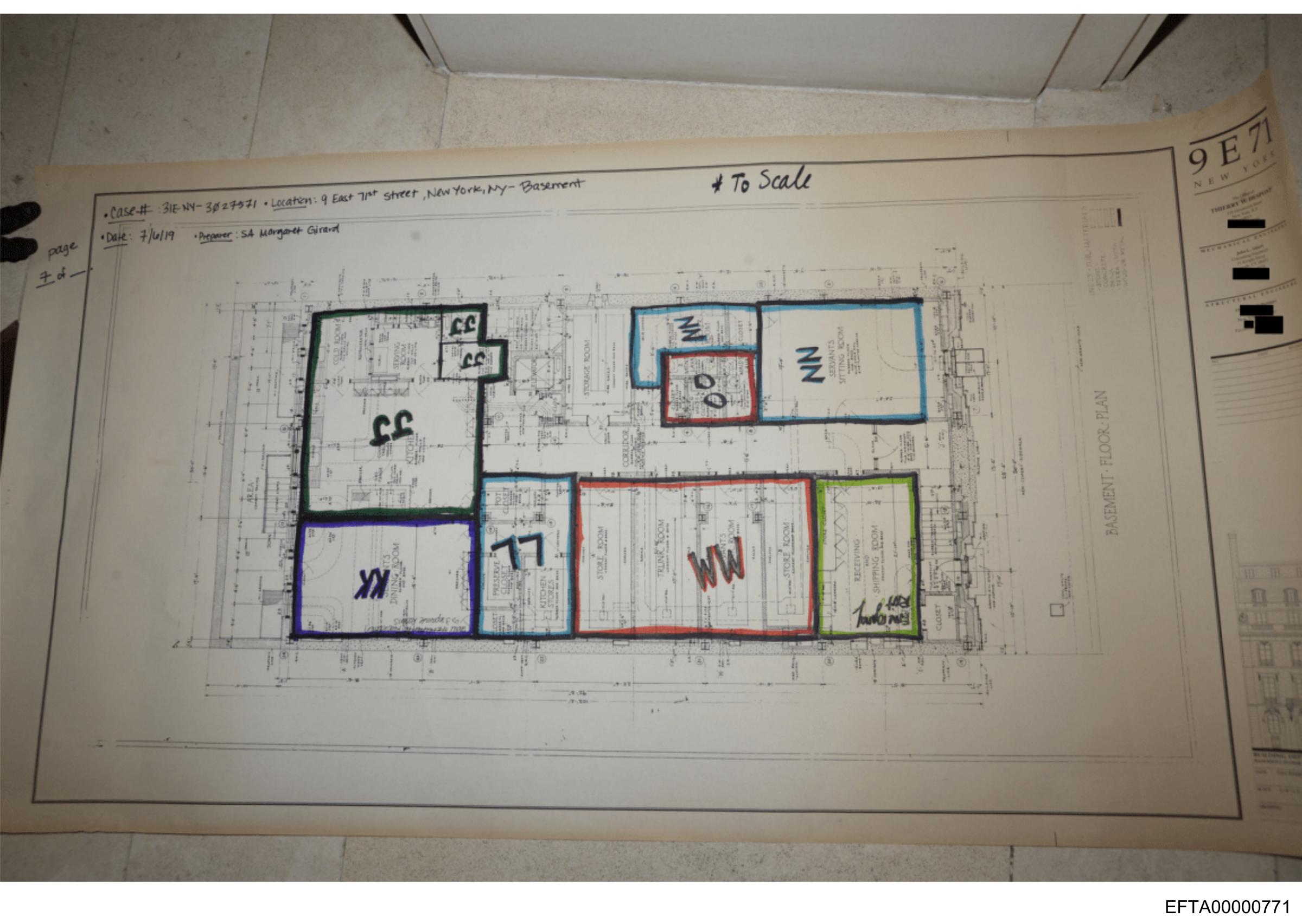 The image shows an architectural floor plan spread out on a surface. The plan is color-coded with different areas marked in red, blue, and green, each likely representing specific zones or rooms within the building layout. There are various labels and notations scattered throughout the plan, which might include room names, dimensions, or other technical specifications relevant to the design of the space. The floor plan appears to be for a residential property, given the size and scale of the rooms depicted. It includes a mix of open spaces and enclosed areas, suggesting a multi-purpose use for the building. The overall condition of the paper is slightly worn or crumpled, indicating it has been handled or used before. There are no visible texts that provide additional context about the location, name of the project, or any other specific details. There are also no people in the image, and the setting appears to be indoors with a focus on the architectural drawing itself. The style of the image is straightforward, aiming to present the layout accurately for viewing purposes.