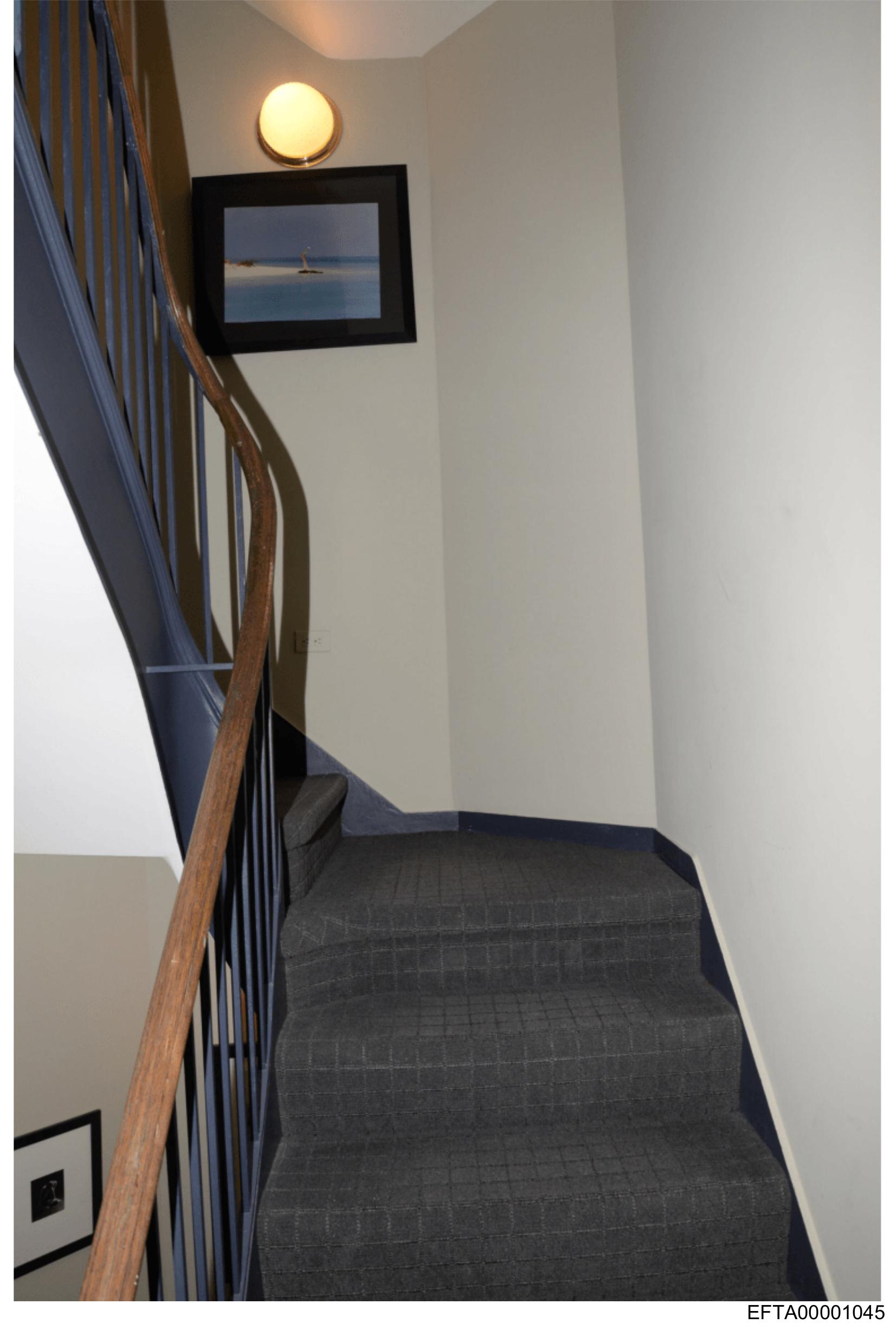 The image shows a stairwell with an upward perspective towards the stairs and what appears to be a landing area.