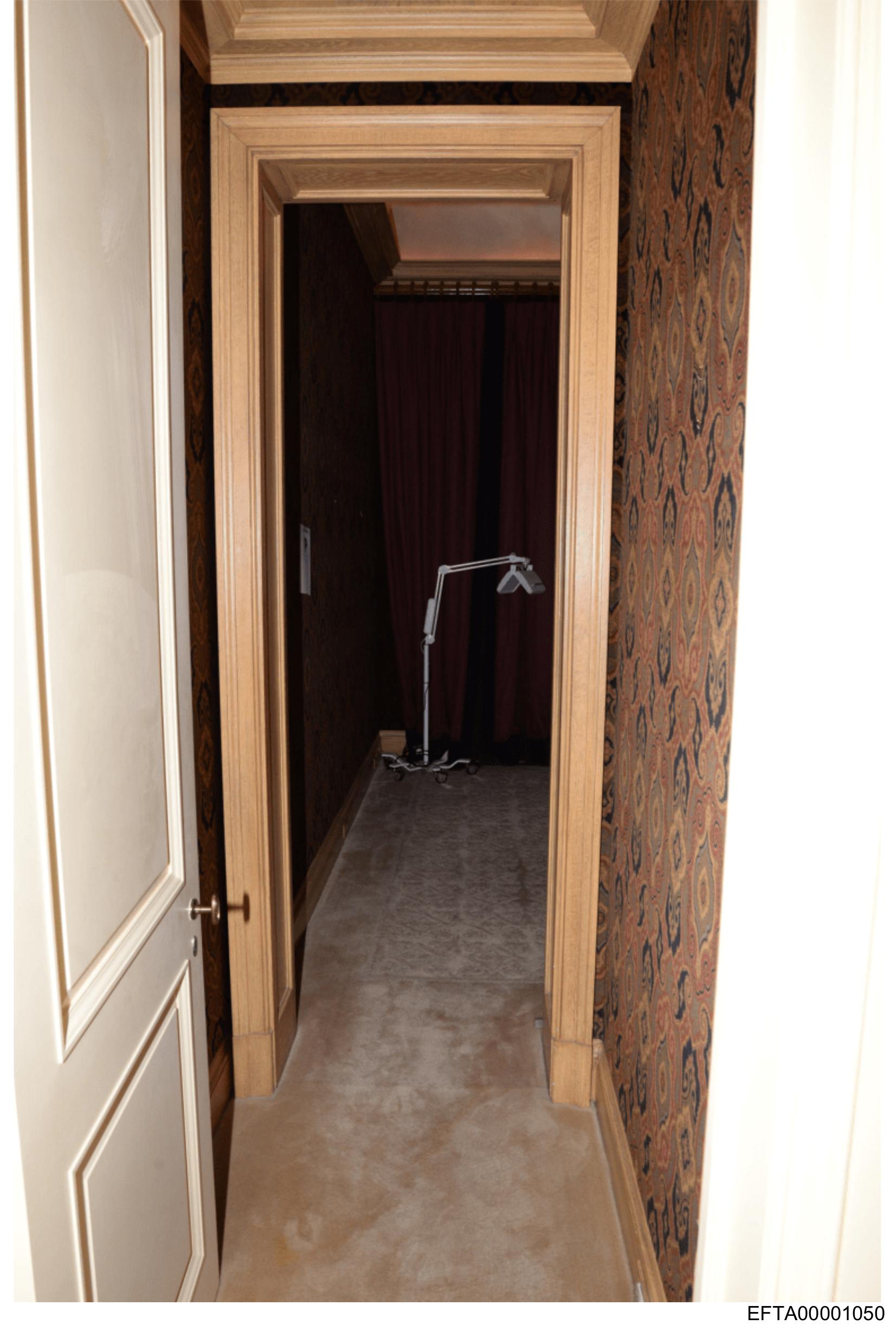 The image shows an interior space that seems to be the entrance to a hallway or corridor.