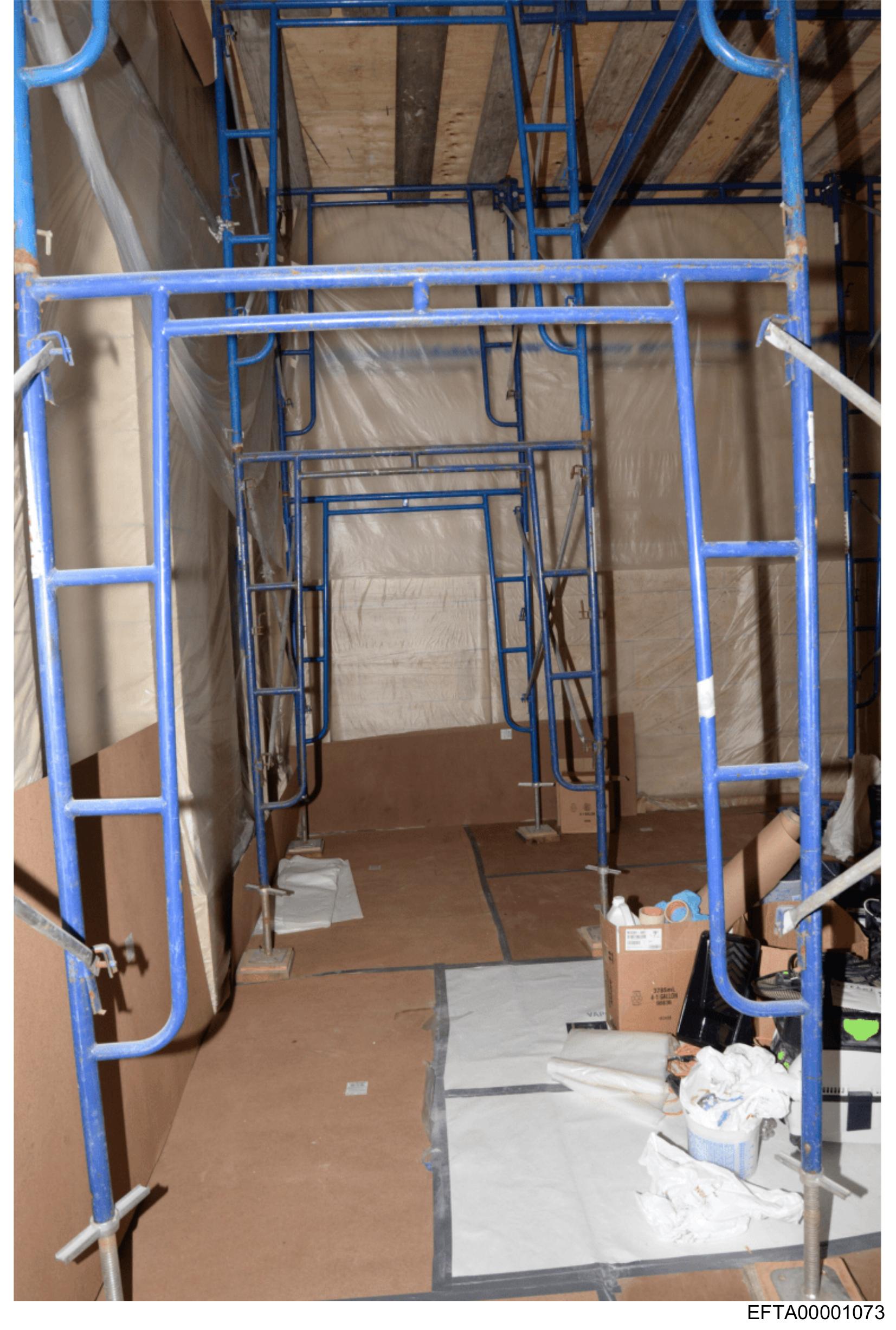 The image shows an indoor setting that appears to be under construction or renovation.