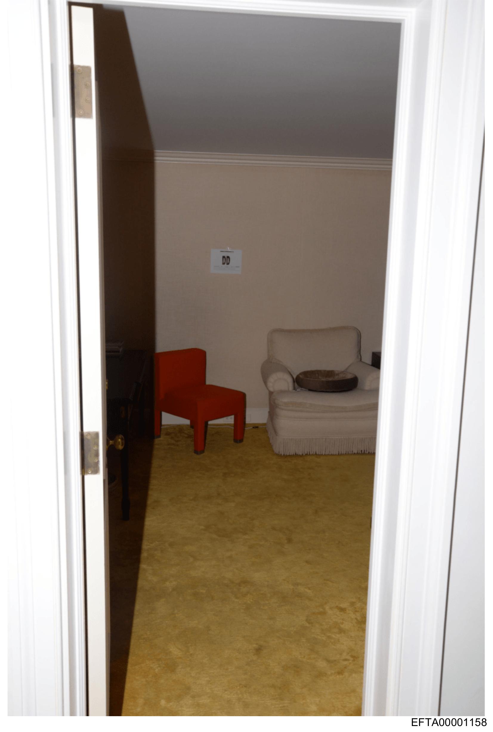 The image depicts the interior of a room viewed from an open doorway.