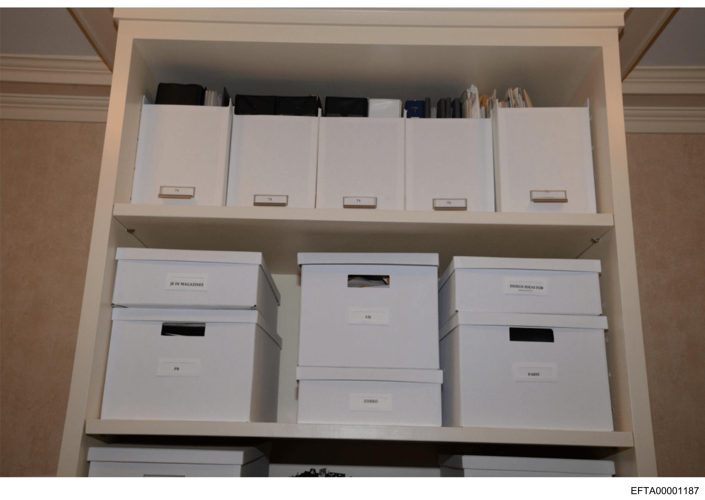 The image shows a shelf filled with binders of various sizes and colors. Each binder appears to have labels on their spines, suggesting they are organized for easy identification. The arrangement suggests a workspace designed for efficient access to important documents or materials. There is no visible text that provides additional context about the contents of the binders. The image itself has a watermark at the bottom left corner with a sequence of numbers "EXIF 17", which typically indicates metadata information from an electronic device used to take or process the photo.