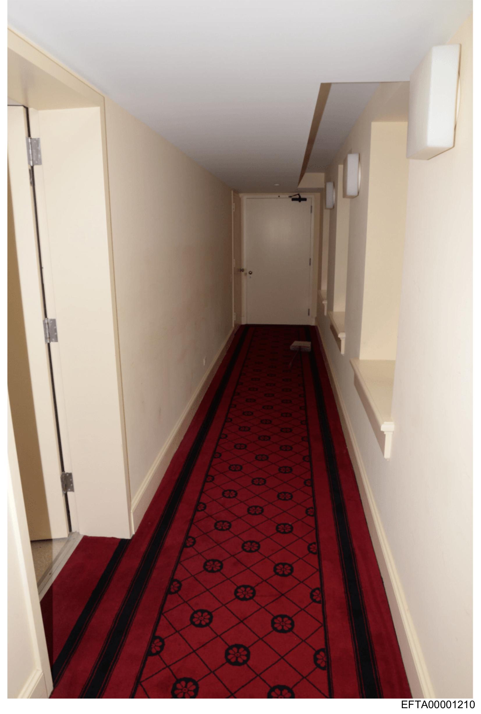 The image shows an interior hallway with walls and a ceiling painted in light colors.