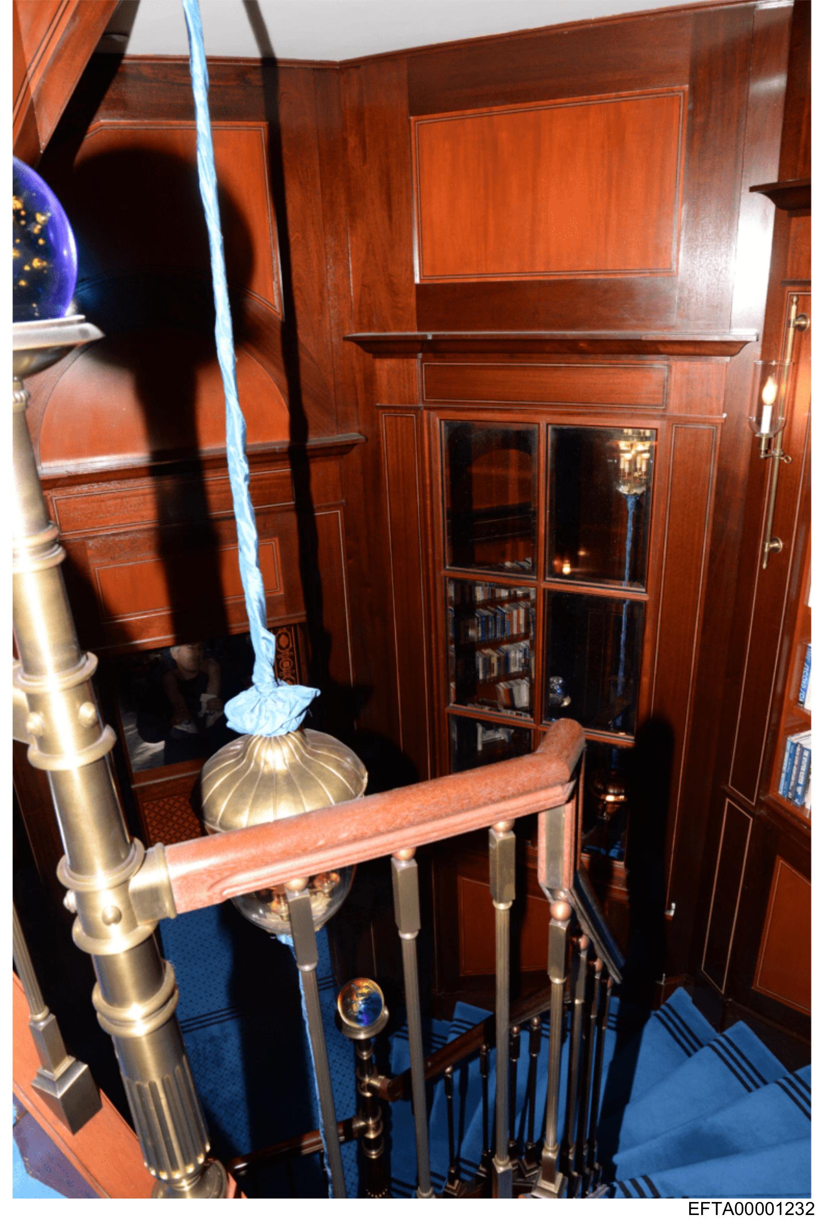 This image features the interior of a classic, well-decorated staircase within a building.