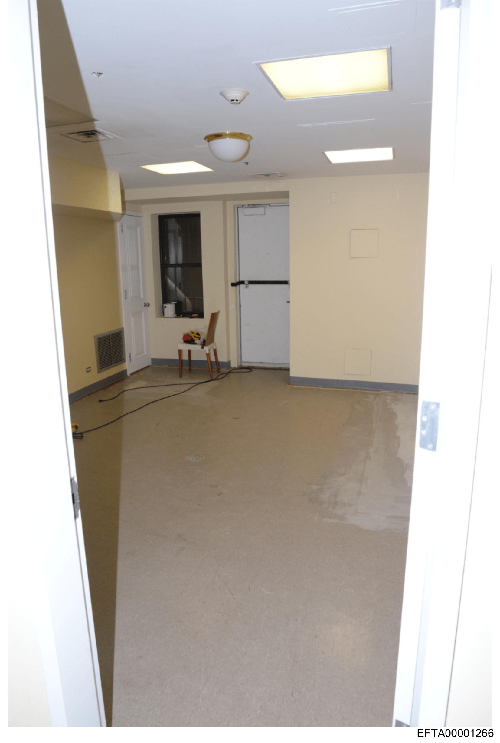 The image shows an interior view of a room that appears to be under construction or renovation.