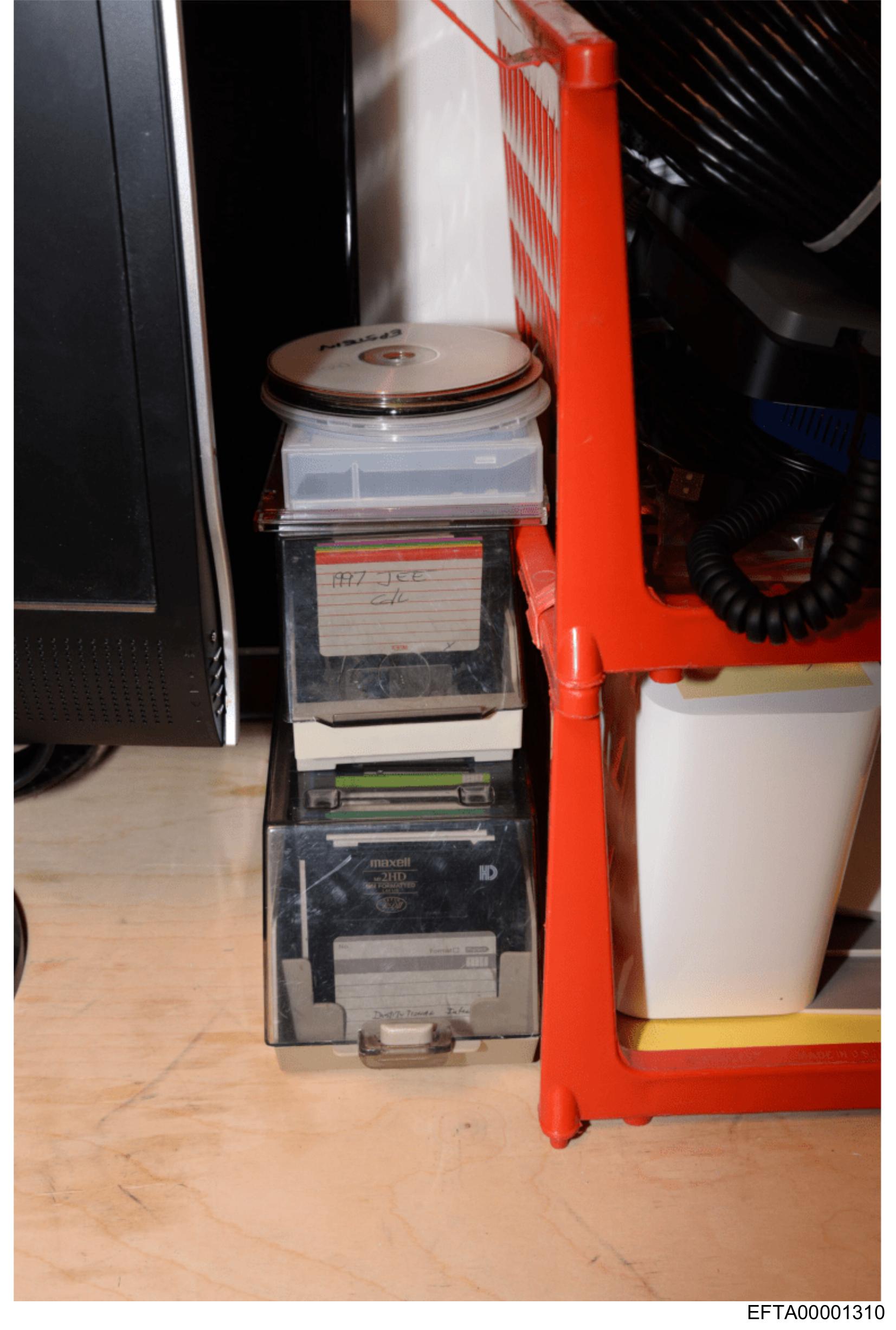 The image shows a collection of CDs and DVDs housed in transparent plastic cases stacked on top of each other. The discs appear to be arranged haphazardly with some overlapping others. Behind the disc cases, there is a red metal structure that resembles a small cart or platform, which adds a pop of color to the scene. There are no visible texts, people, or locations in this image. The focus seems to be on the collection of media storage items, suggesting a personal or perhaps professional interest in these formats.