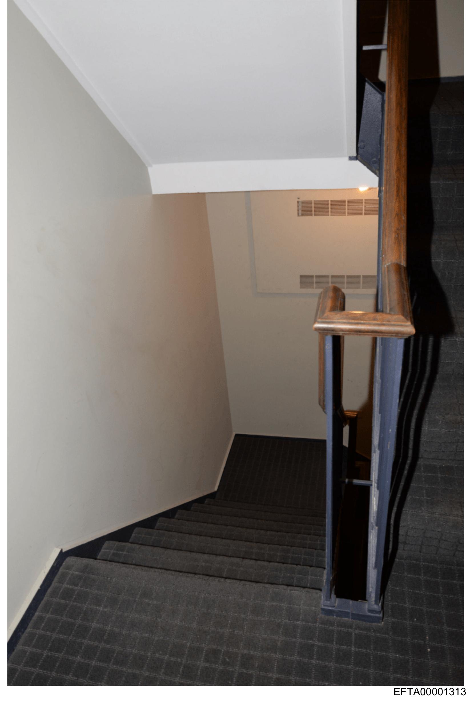 The image shows a staircase with several steps leading upwards. The stairwell is narrow and the walls are painted white. There is no visible text, nor are there any people present in the scene. The flooring of the stairwell appears to be tiled, but it's not entirely clear due to the angle and lighting. The image has a timestamp or watermark at the bottom that reads "2003," suggesting when the photo was taken or possibly indicating an event related to 2003.