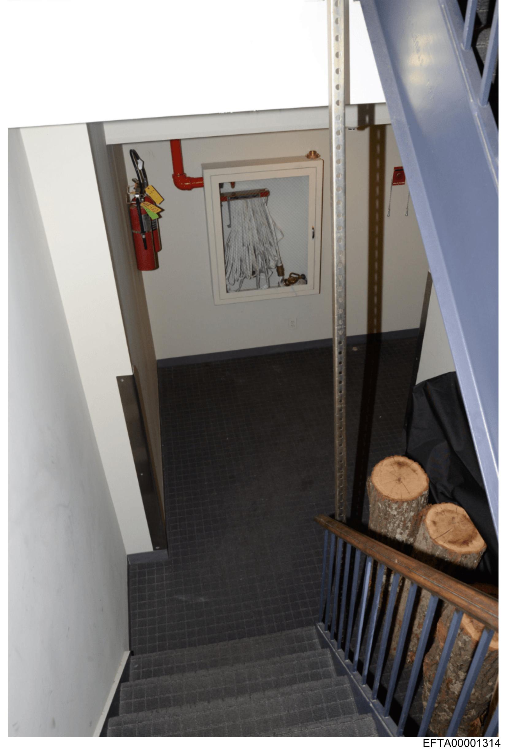 The image shows an interior scene focused on a staircase.