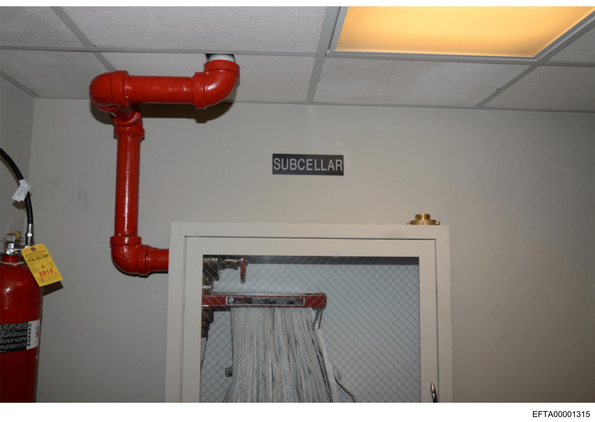 The image shows an indoor setting with a focus on a red fire hydrant.