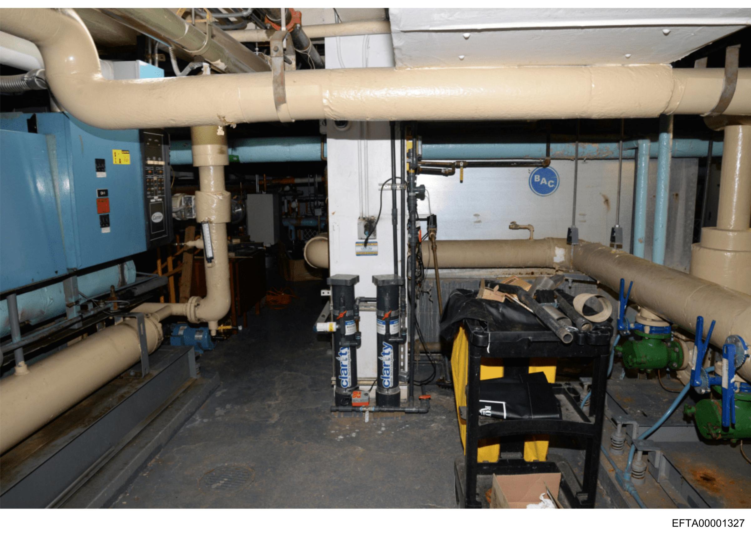 The image shows an industrial setting with complex machinery and piping systems.