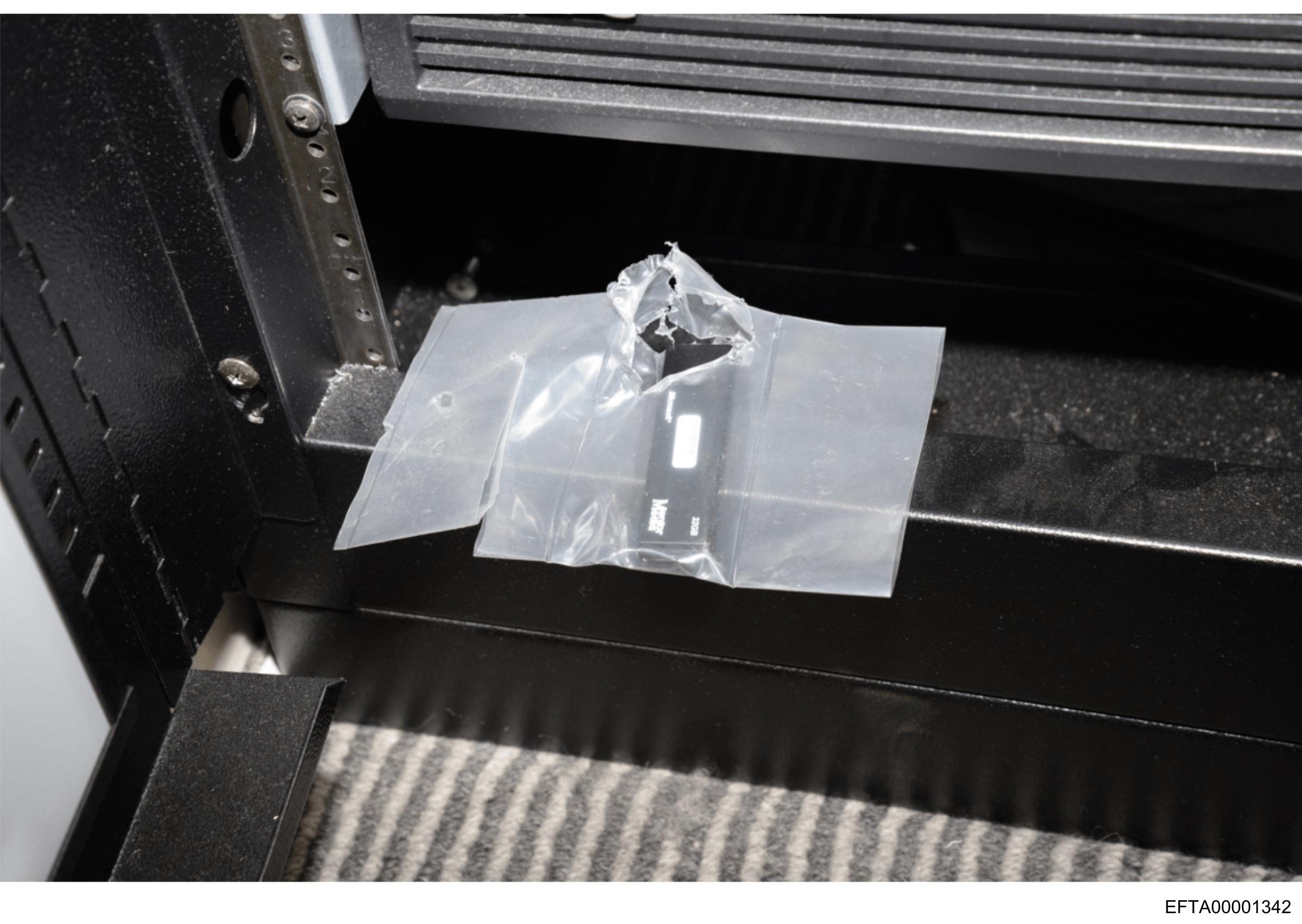The image shows a close-up of an object wrapped in clear plastic with a label on it.