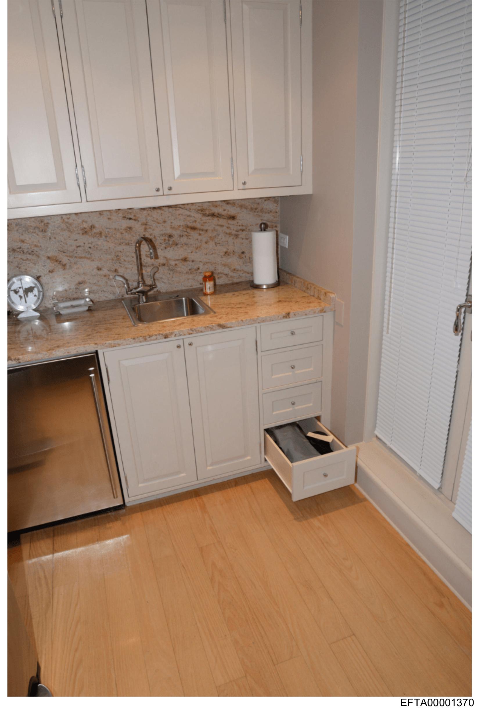 The image shows a well-lit kitchen with modern appliances and fixtures.