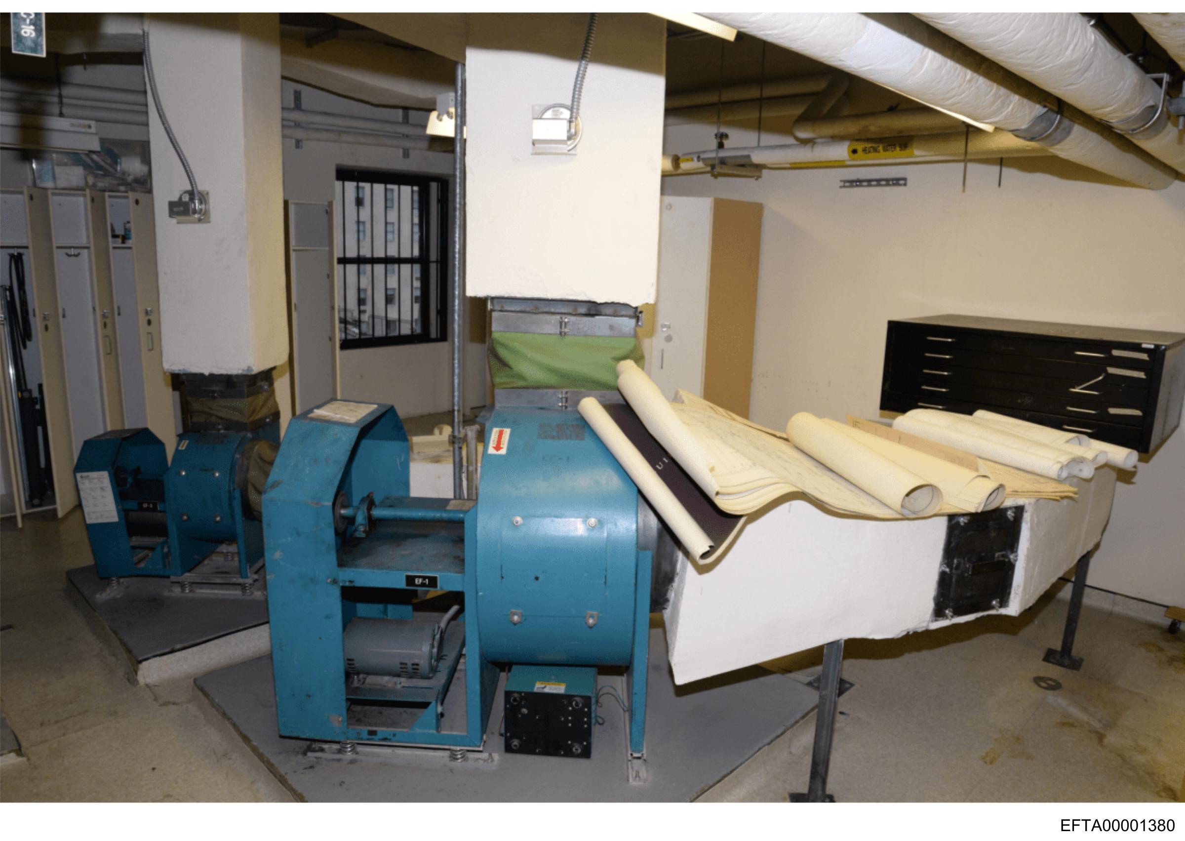 The image shows an industrial setting with various pieces of machinery and equipment.