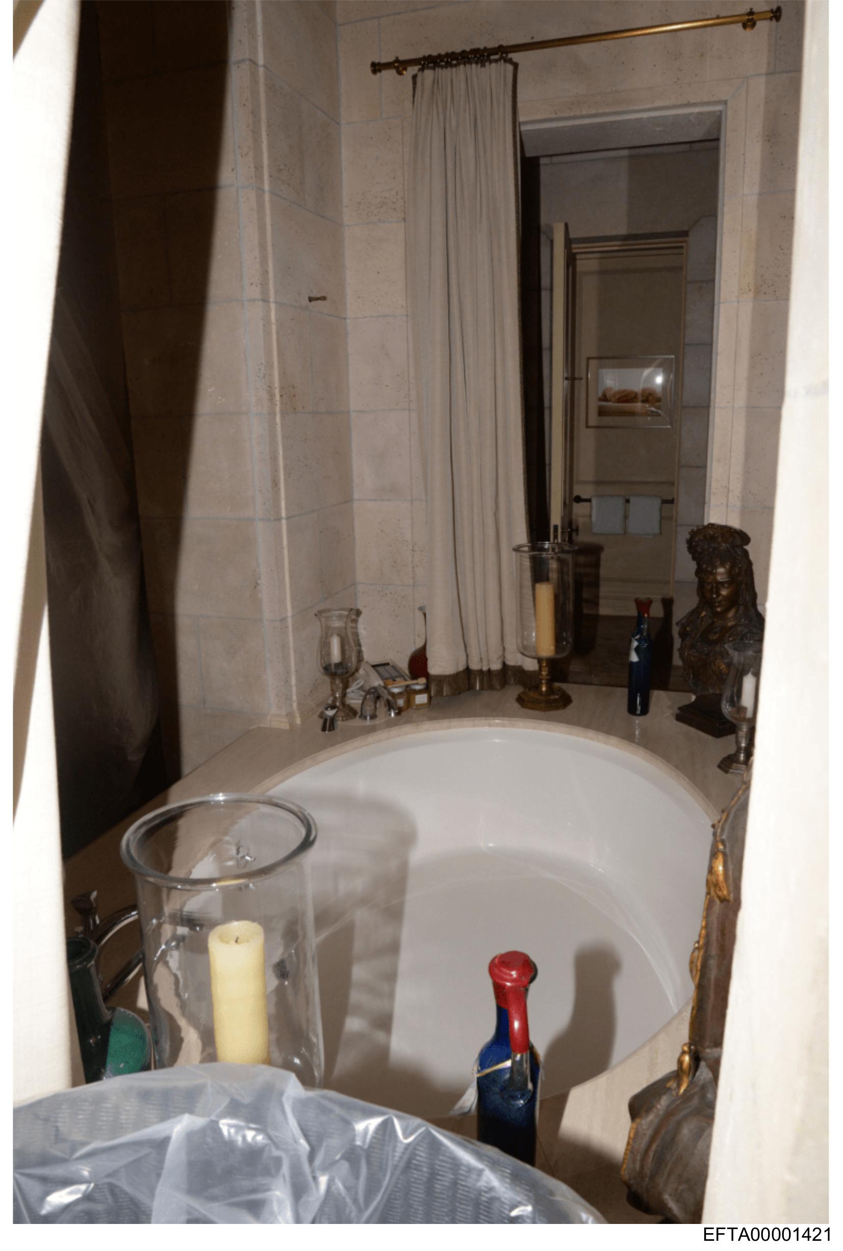 The image shows an interior view of a bathroom with a focus on a bathtub.