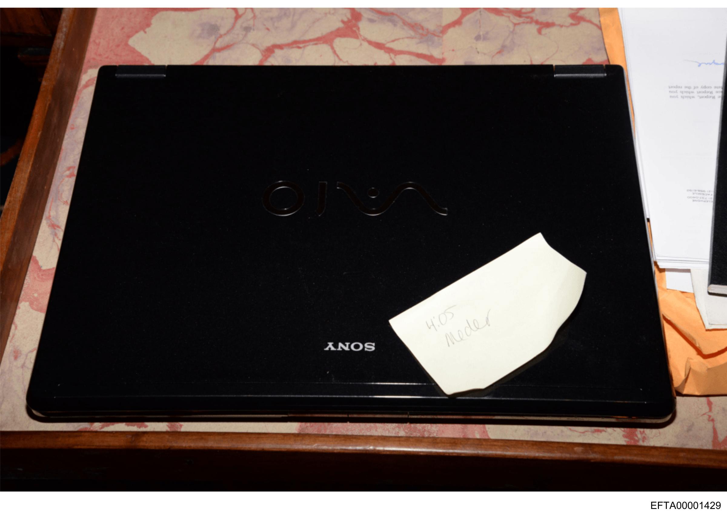The image shows a black laptop placed on top of what appears to be a piece of paper with writing on it.