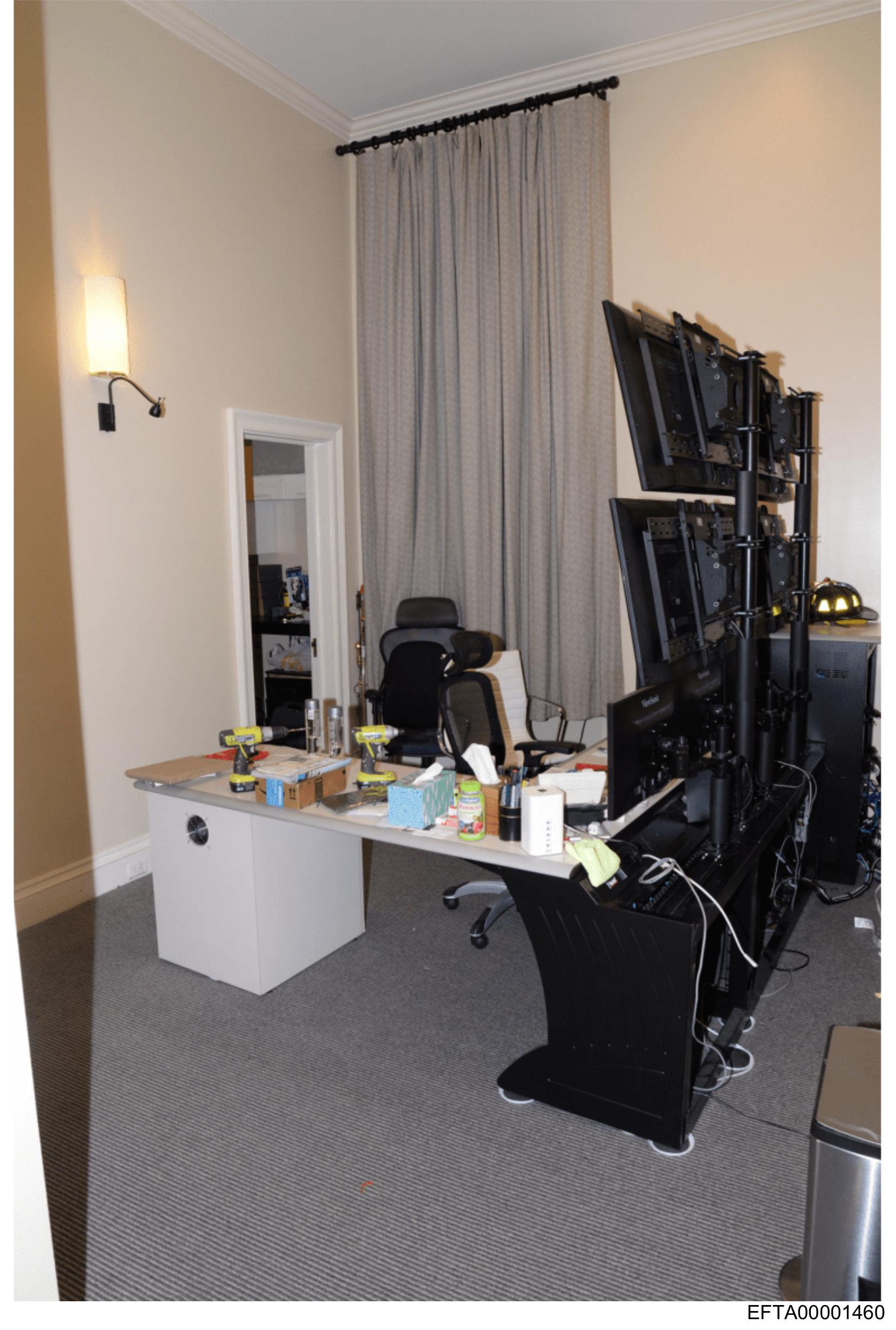 The image shows a room with a workspace setup.
