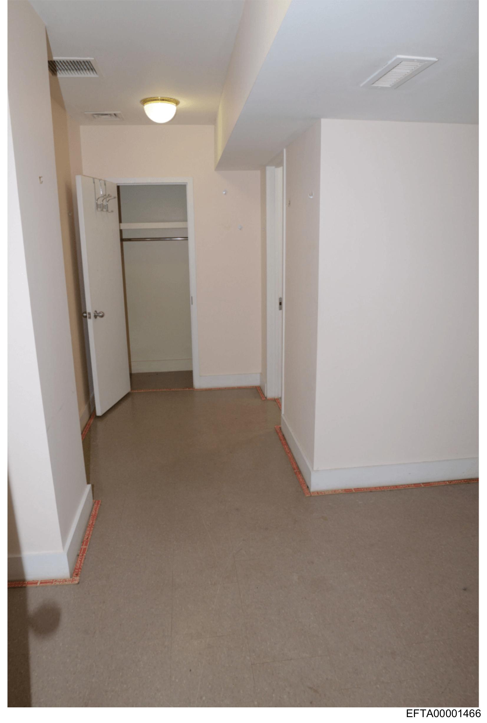 The image shows an interior hallway with a tiled floor and walls painted in light beige.