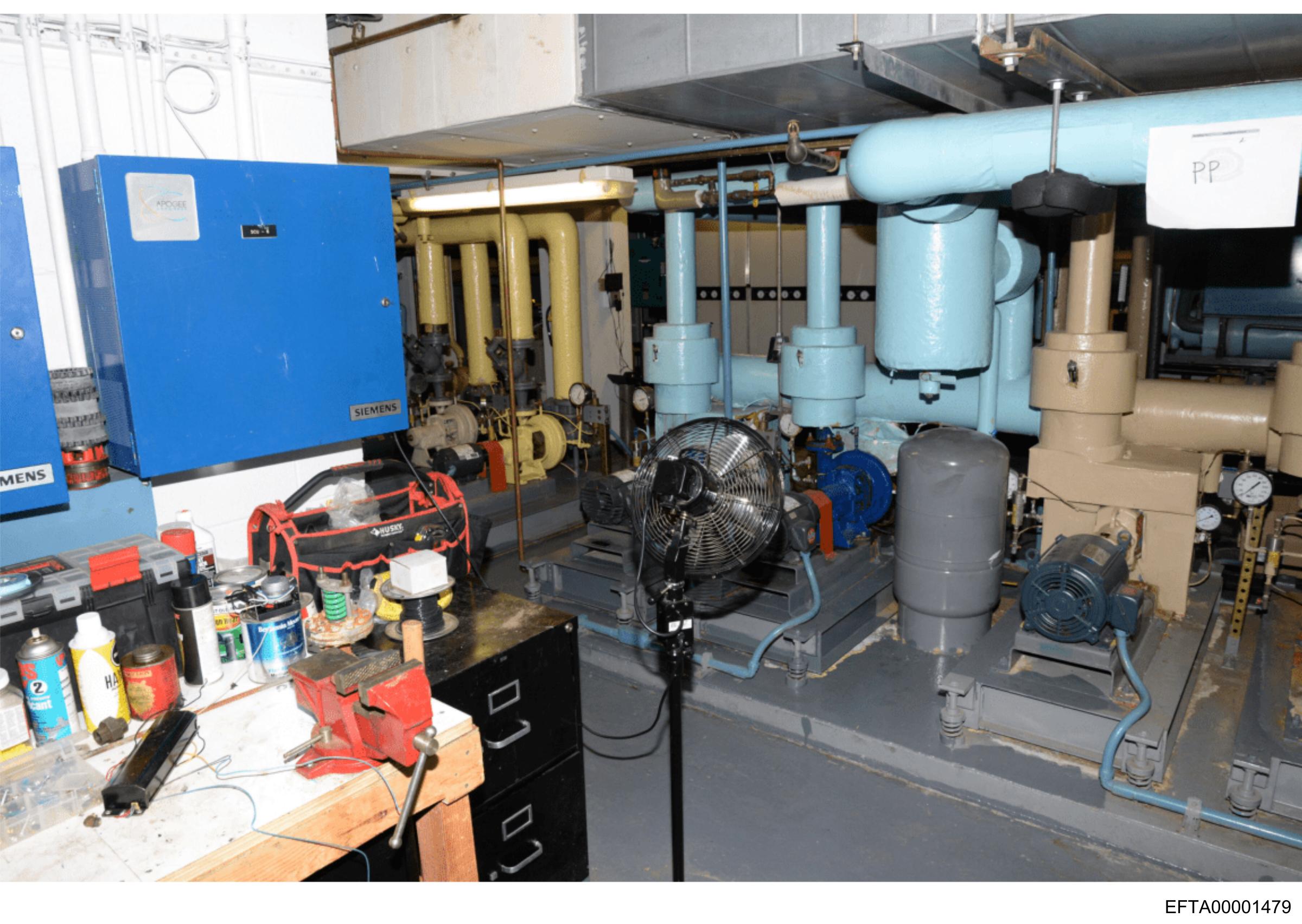 The image shows an industrial setting with various pieces of equipment and machinery.