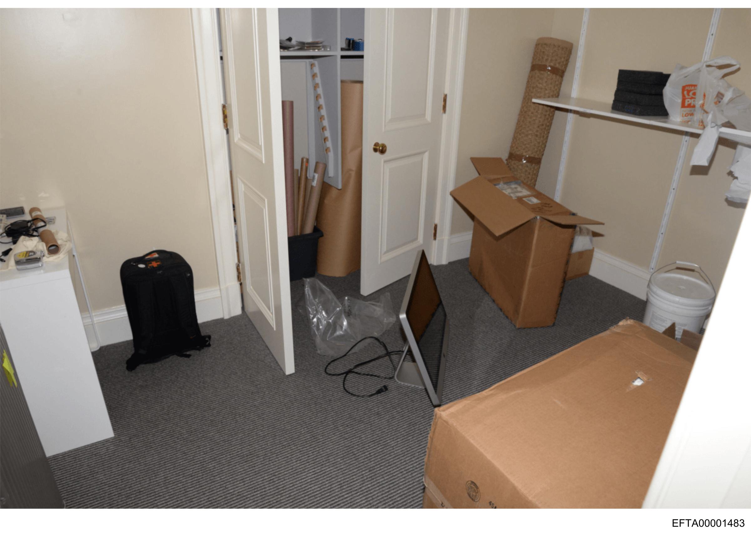 The image depicts a room that appears to be in the process of being packed up or set up for moving.