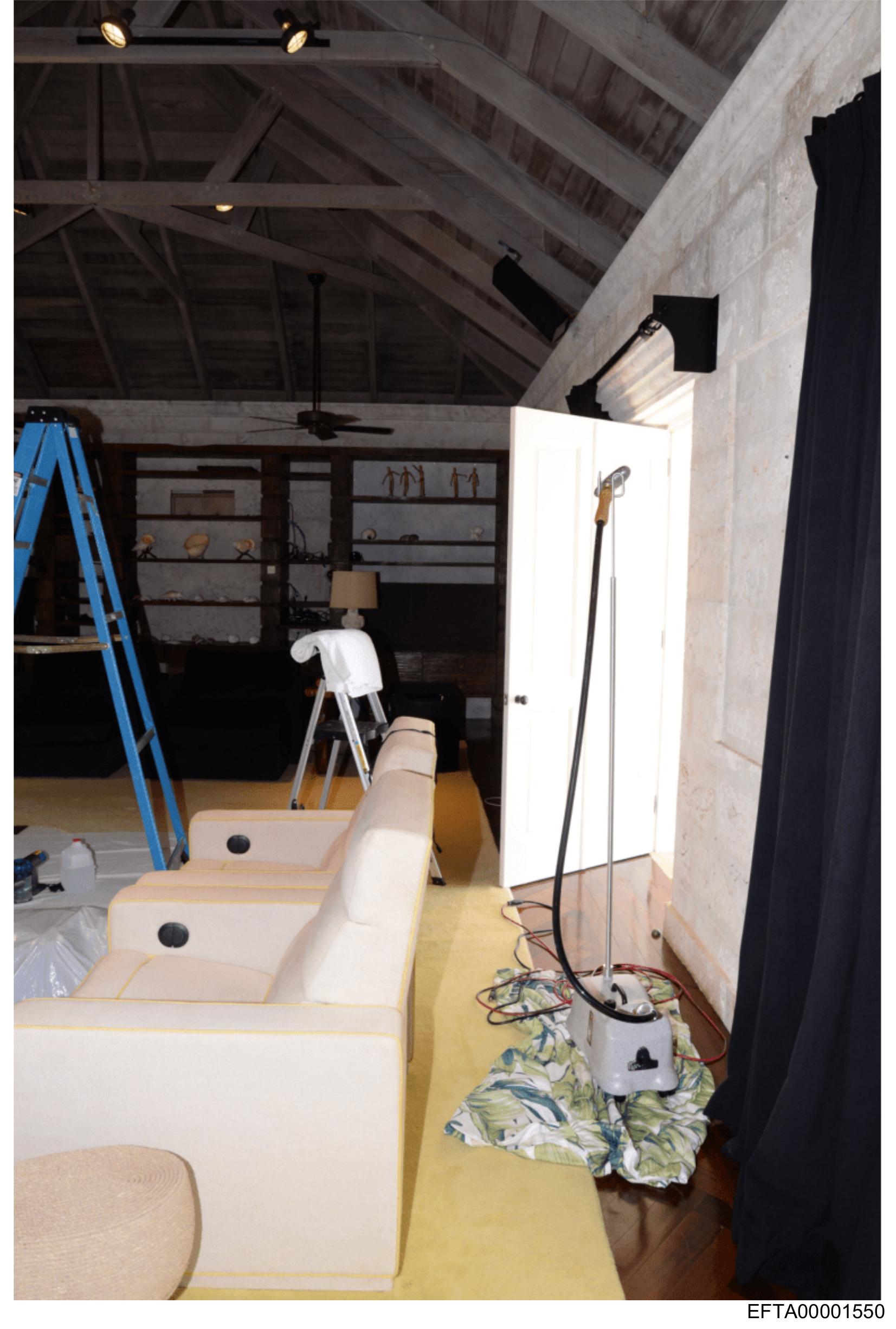 The image is a photograph of an interior space that appears to be undergoing renovation or construction work.