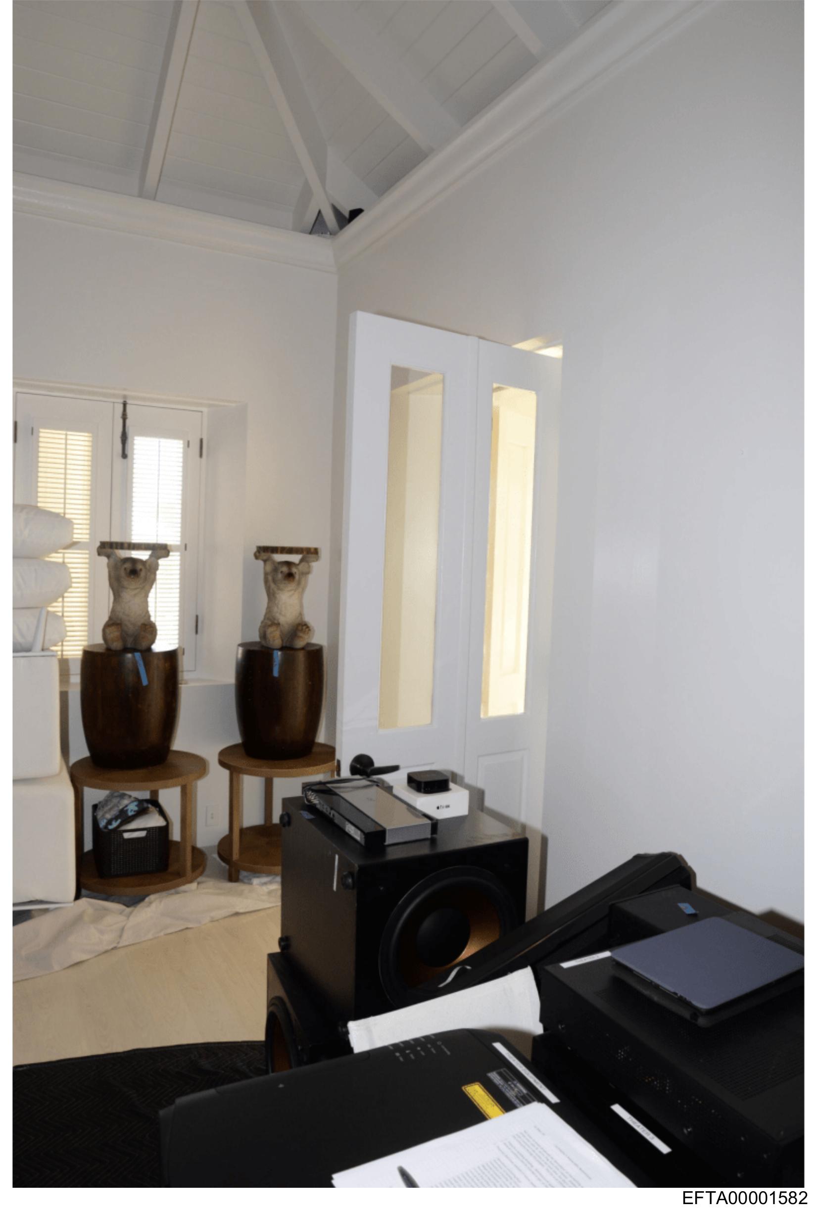 The image captures a cozy room bathed in soft light from two windows on the right side. The wooden ceiling adds a rustic charm to the space. On the left, three vases of varying sizes stand like silent sentinels against the backdrop of the room. One vase is particularly large and positioned towards the back, while two smaller ones are closer to the foreground. In front of these vases, a table holds an intriguing object - a small statue or figurine of a dog. The details on this piece are not entirely clear due to its size and distance from the camera's perspective. However, it adds a unique touch to the room's decor. There is no visible text or people in the image. The location appears to be indoors, possibly a living room or study area, given the presence of the desk and chair at the bottom right corner.