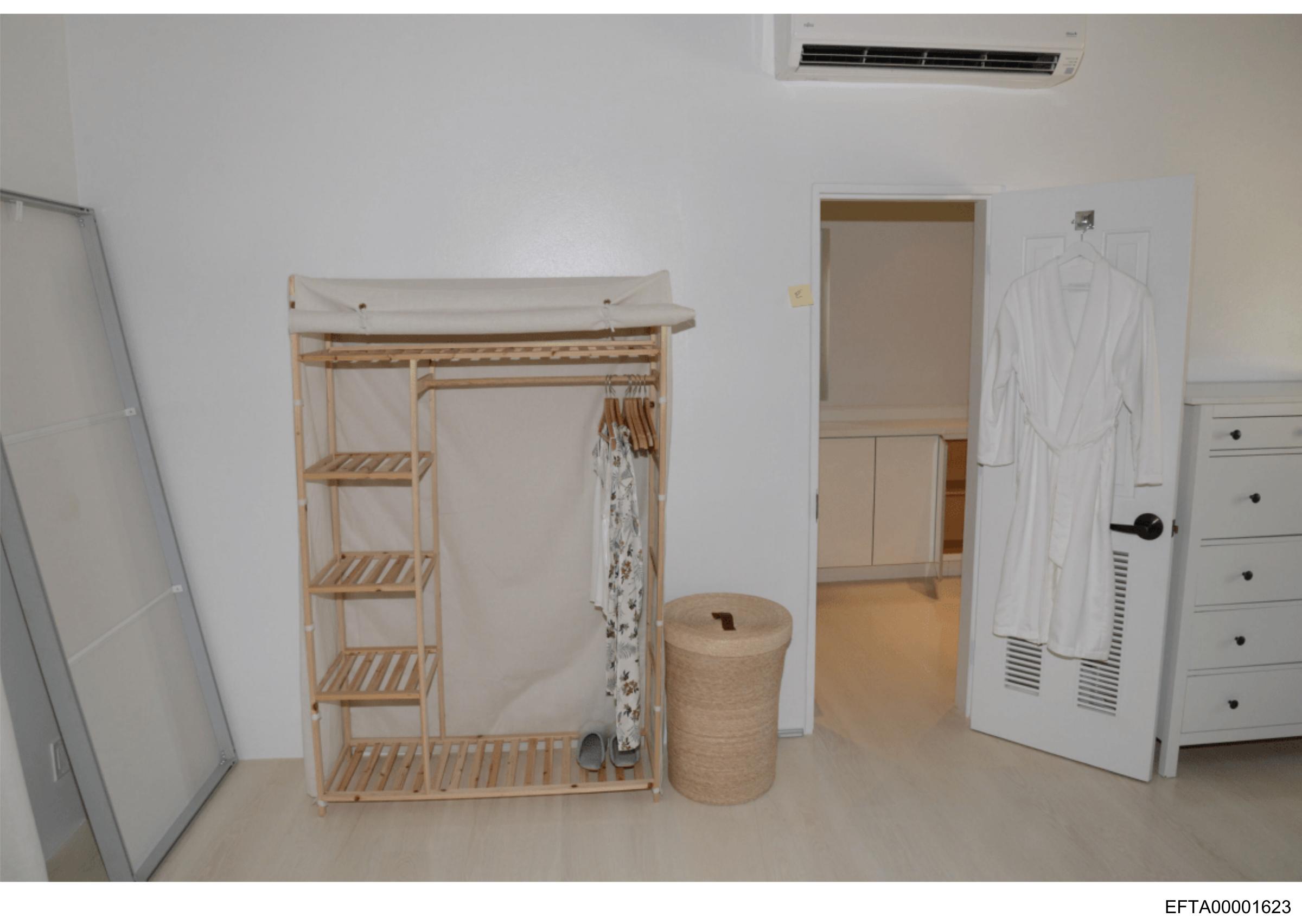 The image shows an interior space with a focus on a neatly arranged room corner.