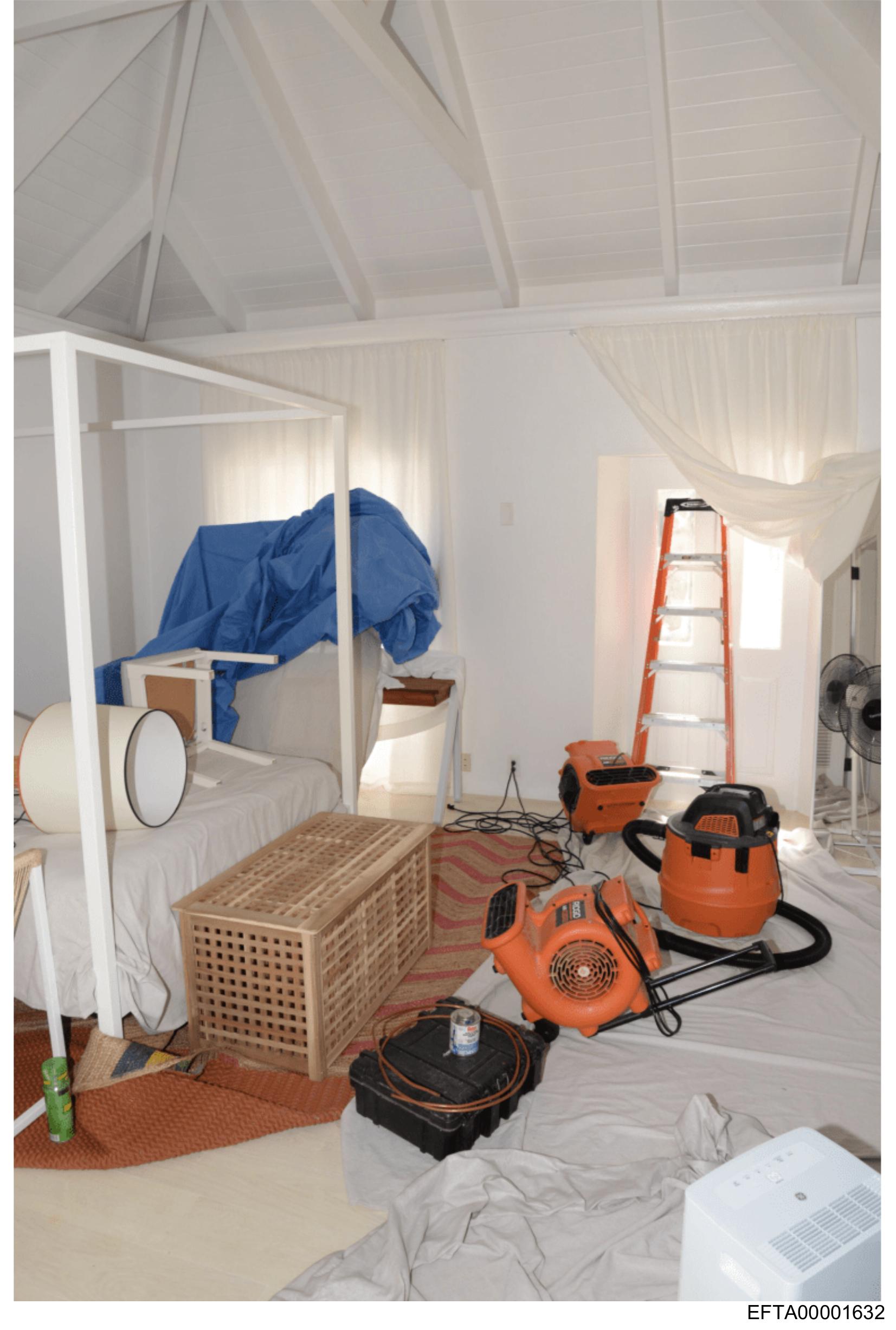 The image shows an interior room that appears to be undergoing renovation or maintenance work.