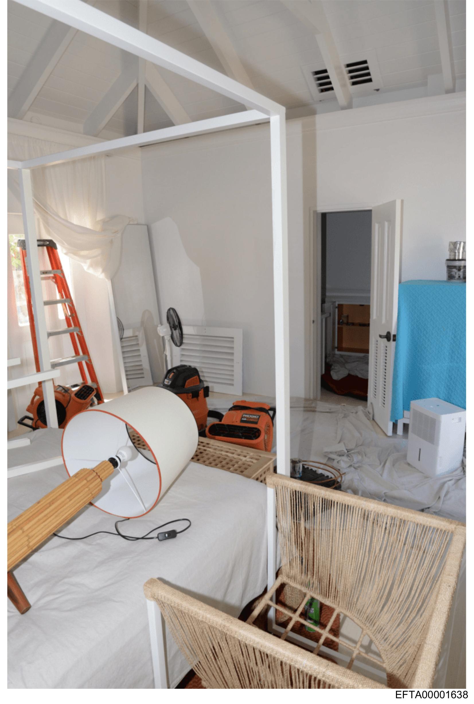 The image depicts the interior of a room during what appears to be a construction or renovation process.