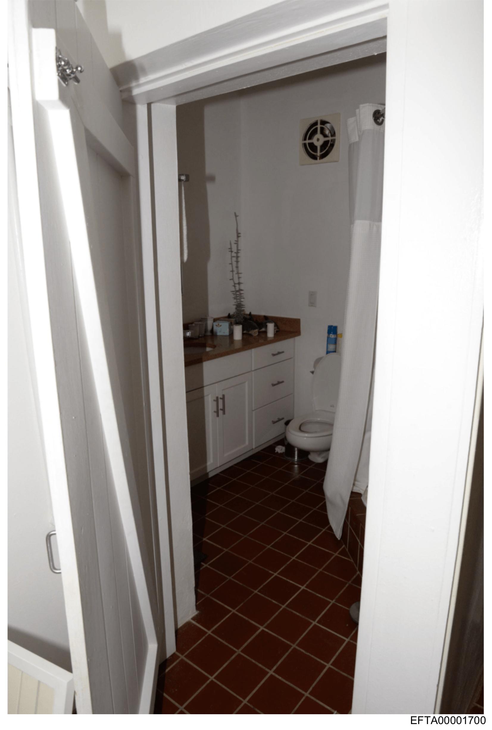 The image shows an interior view of a bathroom doorway.