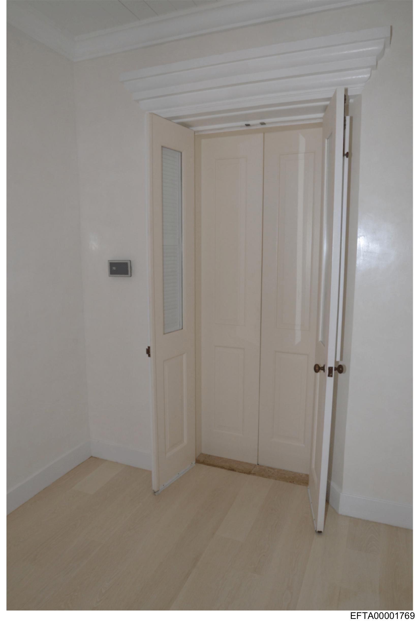 The image shows an interior doorway with a partially open door that leads to another room. The hallway is well lit and has walls painted in a light color. The flooring appears to be wooden, and the ceiling features a decorative molding or paneling detail near the door frame. There are no texts visible on the image, and there are no people present. The style of the image seems to be a standard photograph intended to capture the doorway and part of the hallway without any specific artistic treatment.