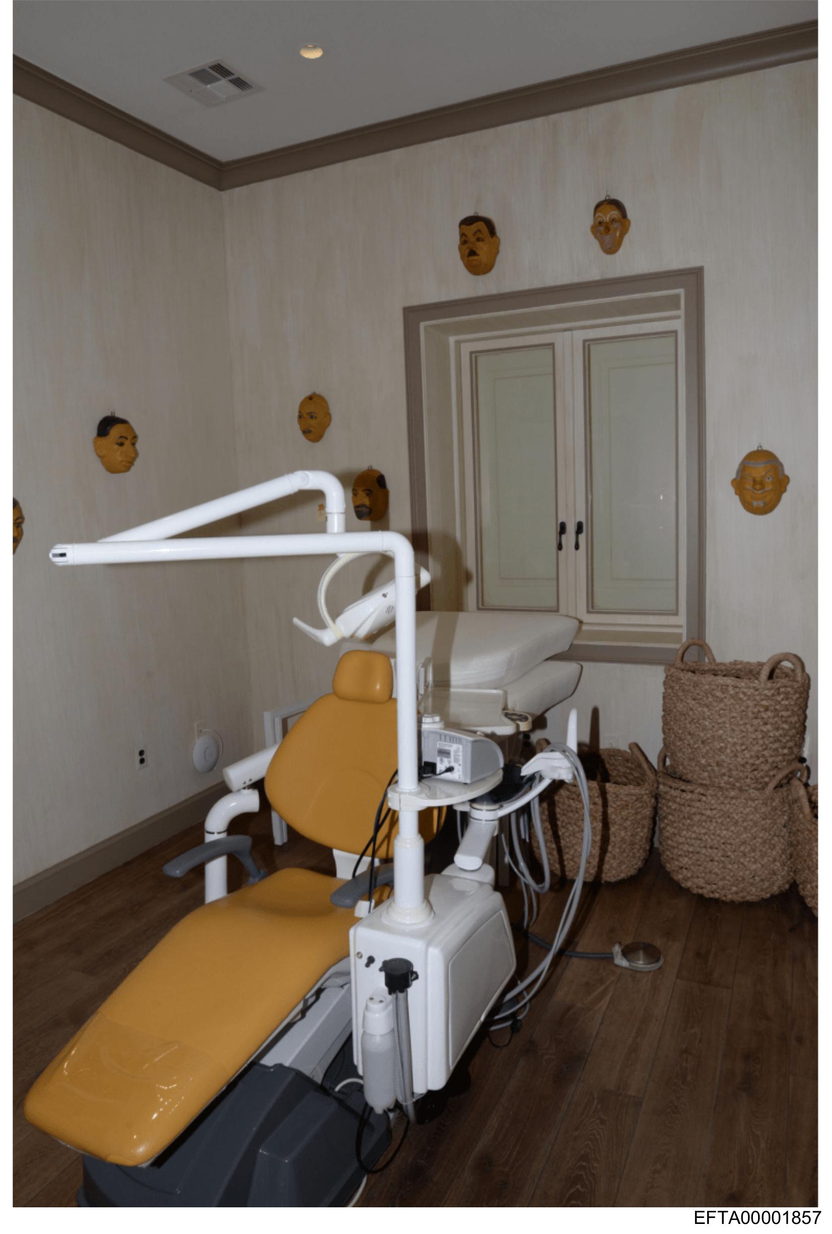 The image shows an interior view of a dental office setup.