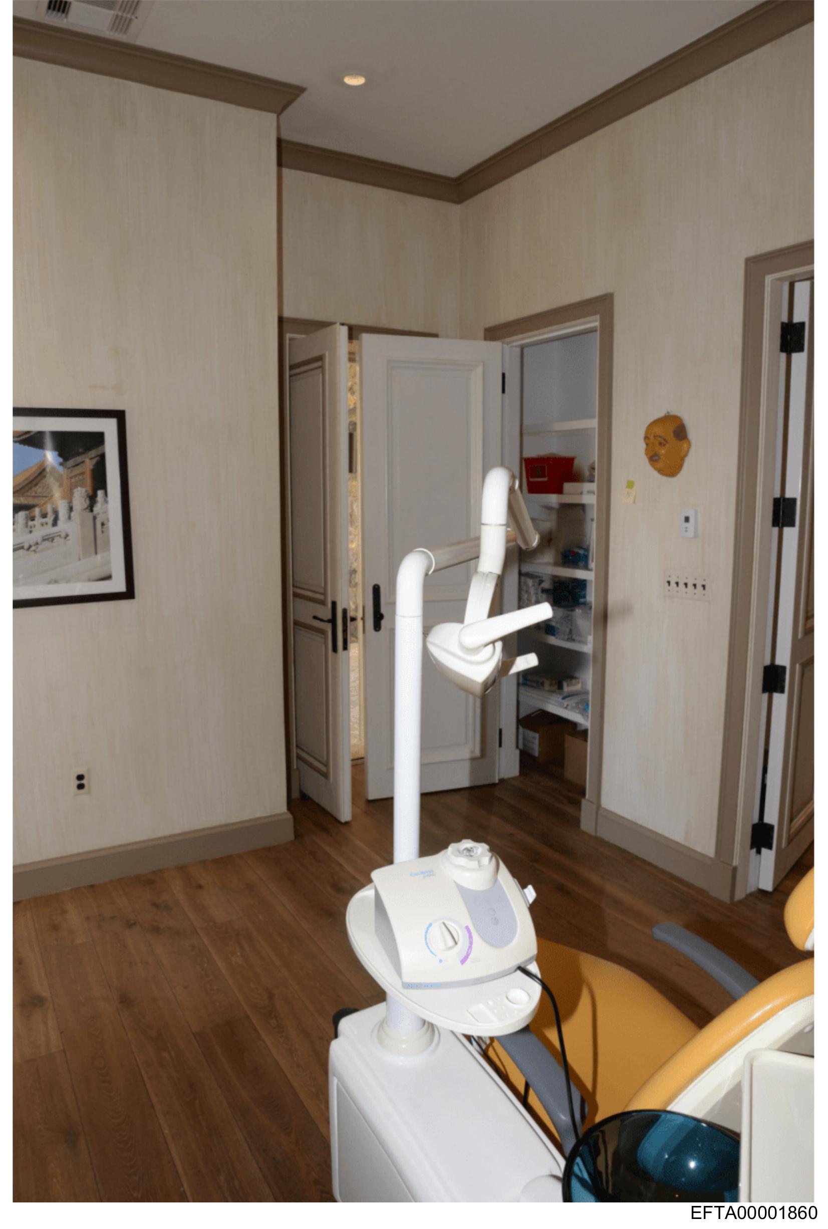 The image shows an interior space that appears to be a dental clinic room.