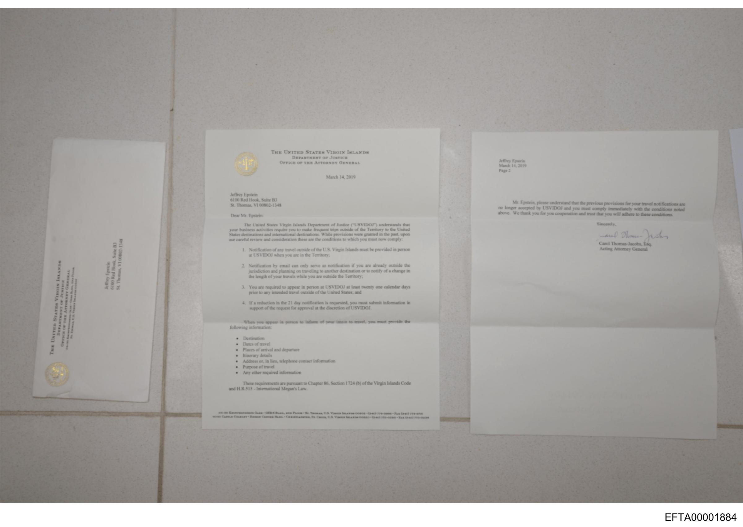 The image shows an official letter and a corresponding envelope lying flat on a surface with a tiled pattern that appears to be a floor.