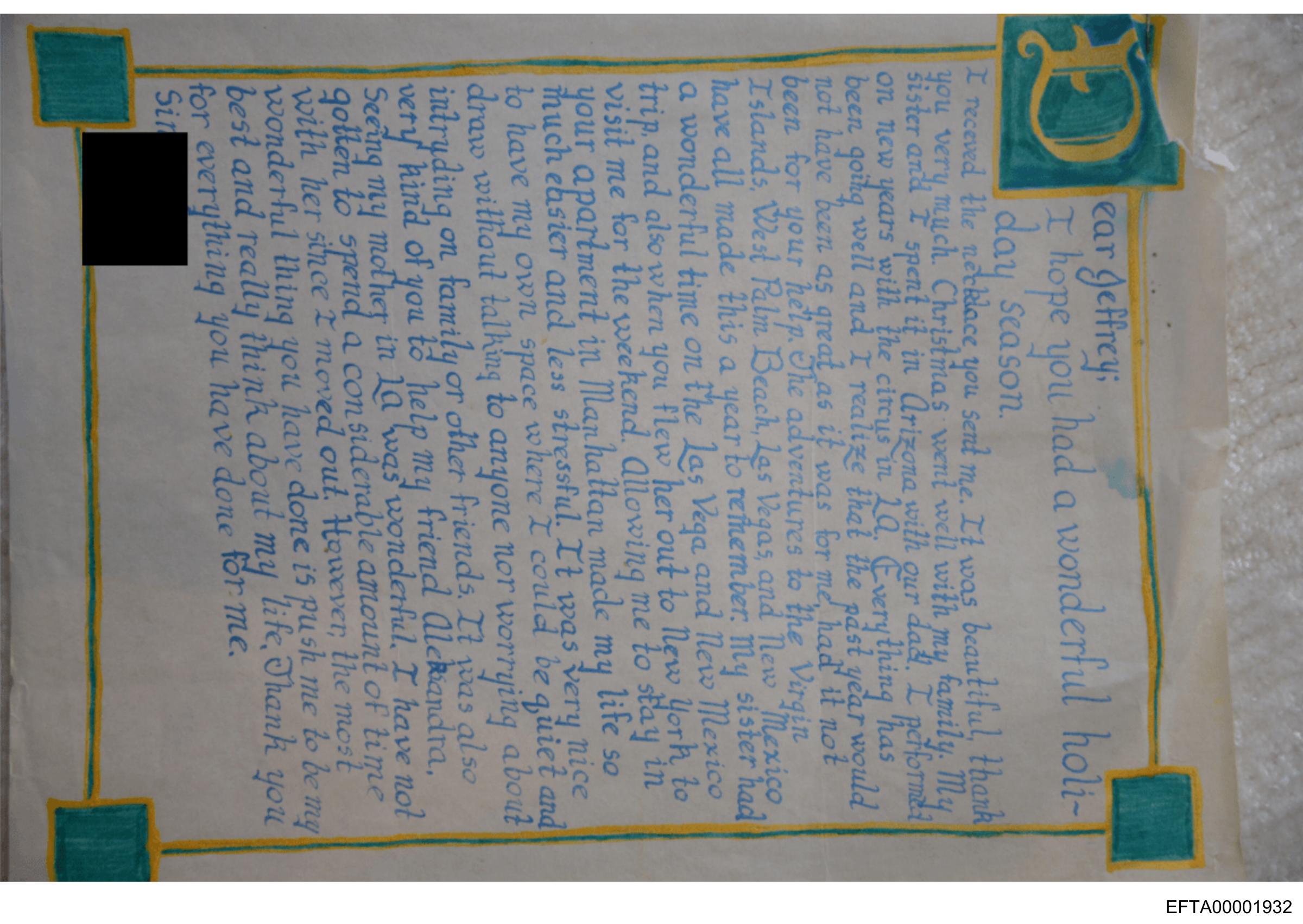 The image shows a handwritten letter on white paper, with visible ink strokes indicating the writing style is cursive. The top right corner of the page contains a small stamp or seal that resembles an emblem, though its details are not clearly legible due to the size and resolution of the image. Below the central text of the letter, there is a signature in black ink, suggesting it is from the author of the letter. The handwriting appears neat but with some variations in pen pressure that give the impression of a natural writing style rather than formal script. There are no visible texts providing additional context or content within the image.