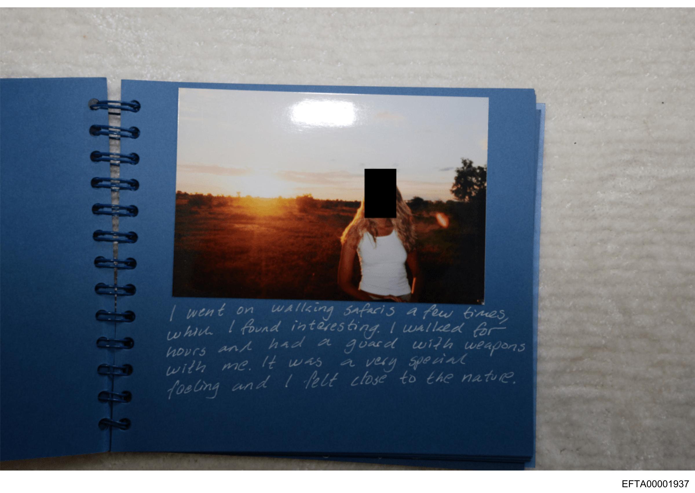 This is a split image showing two different views of the same object. On the left side of the image, we see a book with its pages splayed open to reveal a photograph within it. The right side of the image provides a closer view of the same photograph, which features a landscape scene at what appears to be either sunrise or sunset. A person is standing in the foreground, silhouetted against the bright light from the sky. On the book's page, there are handwritten notes and a signature, suggesting that the photo was taken by someone named "Jessica" who wrote about her experience of watching an eclipse. The visible text includes phrases such as "I wanted to watch it alone, but then you came along with your love for stars" and other personal reflections connected to the moment captured in the photograph. The images are overlaid with a watermark or logo that reads "EXIF," which is likely related to metadata tagging within digital photographs. The style of the image captures a personal memento, possibly evoking feelings of nostalgia or the sentimental value of physical photography and handwritten notes.