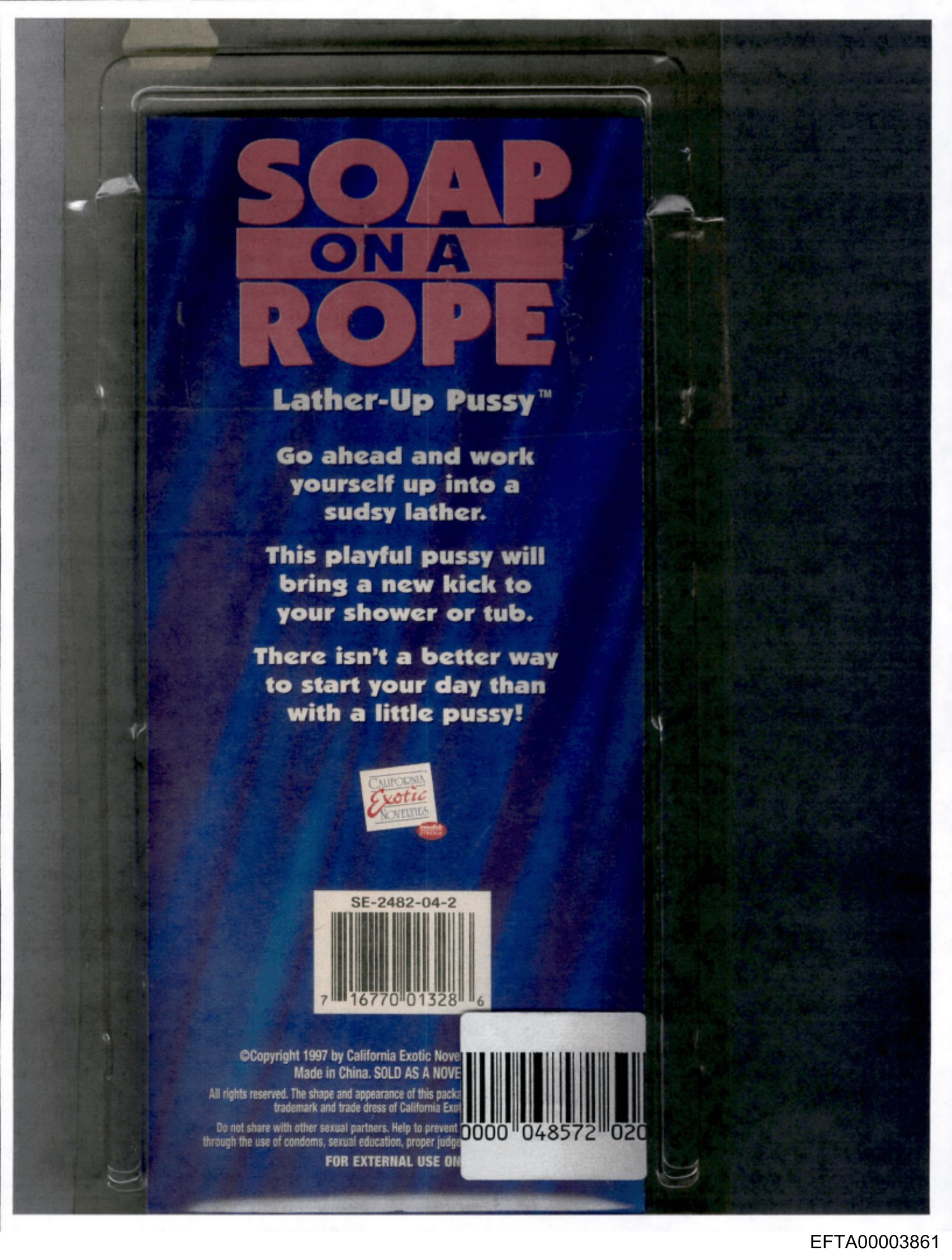 The image shows a close-up of what appears to be a product packaging with the title "SOAP ON A ROPE" prominently displayed at the top in bold letters.
