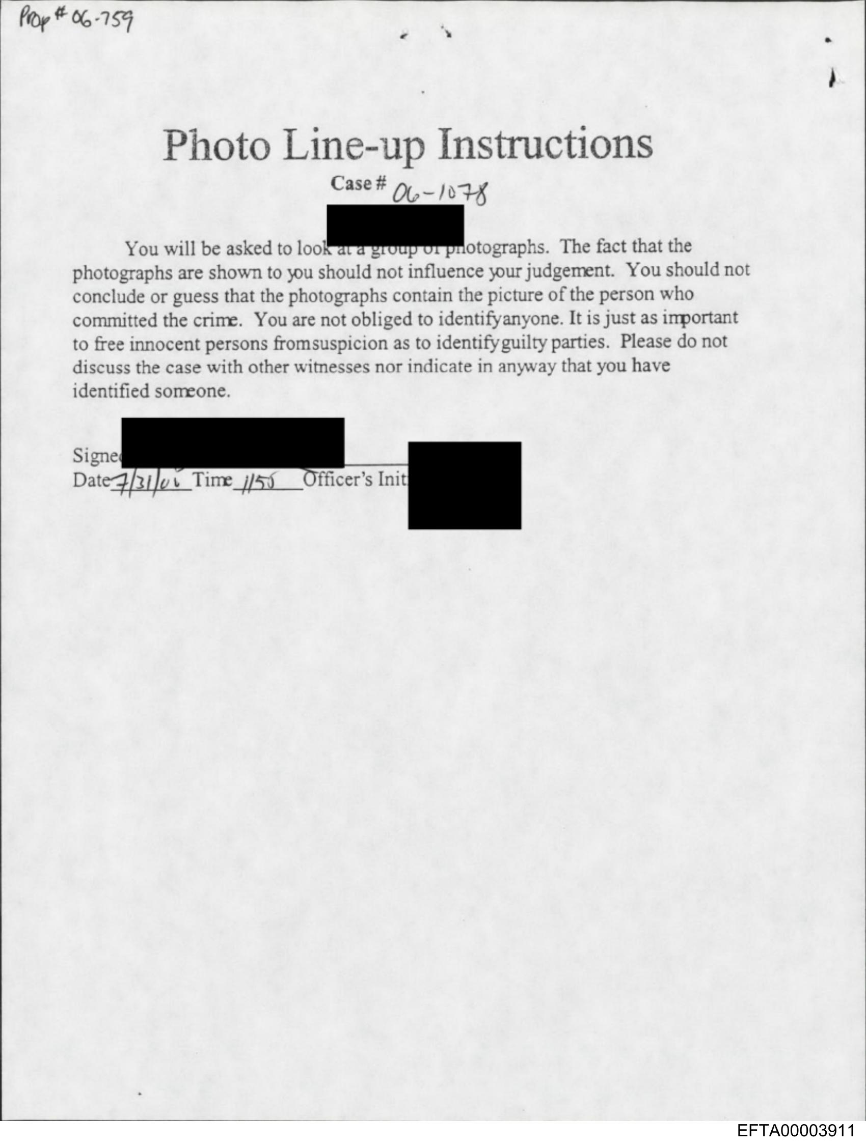 The image is a photograph of a document titled "Photo Line-Up Instructions".