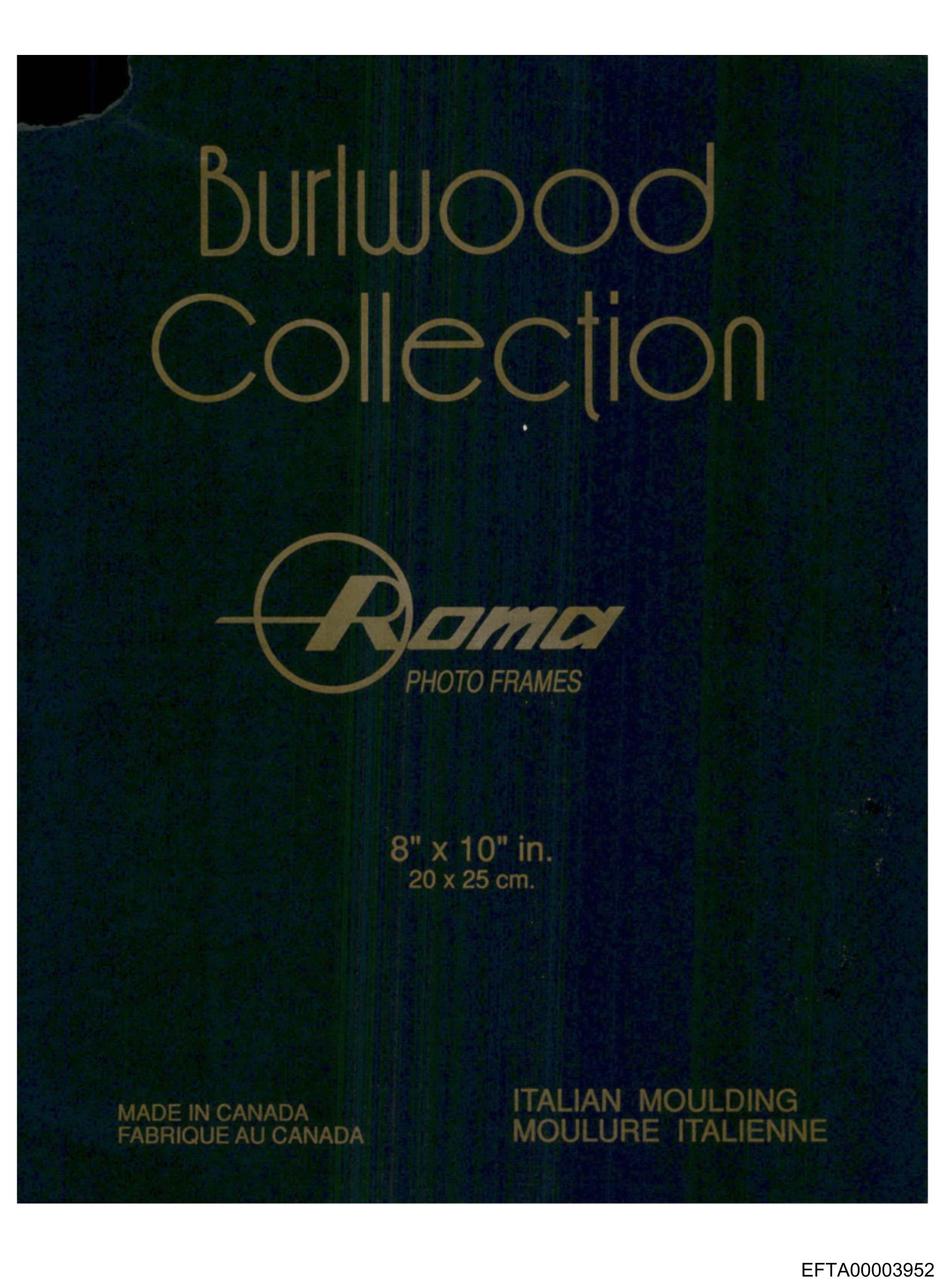The image displays a vintage frame label for the Burwood Collection.