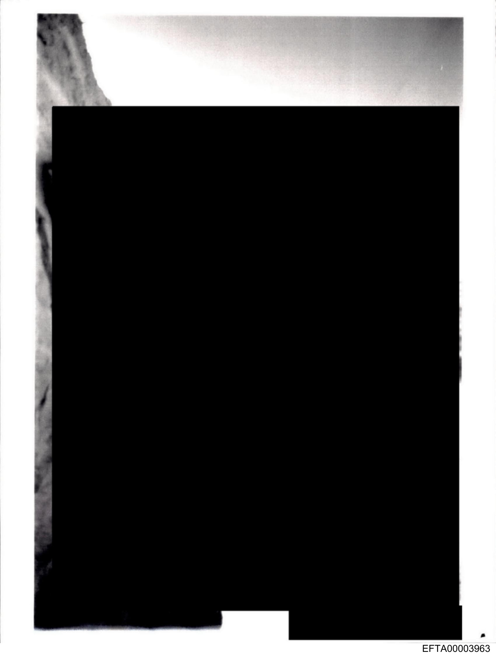 The image is a black and white photograph that appears to be heavily manipulated or altered. The central portion of the photo is obscured by a large, solid rectangle of black color, which completely blocks out what might have been visible inside it. This rectangular block could possibly be an artifact of digital editing. The edges of the image show parts of other elements, but their details are not clear due to the altered nature of the photograph. There is no text present in the image that is legible enough to describe.