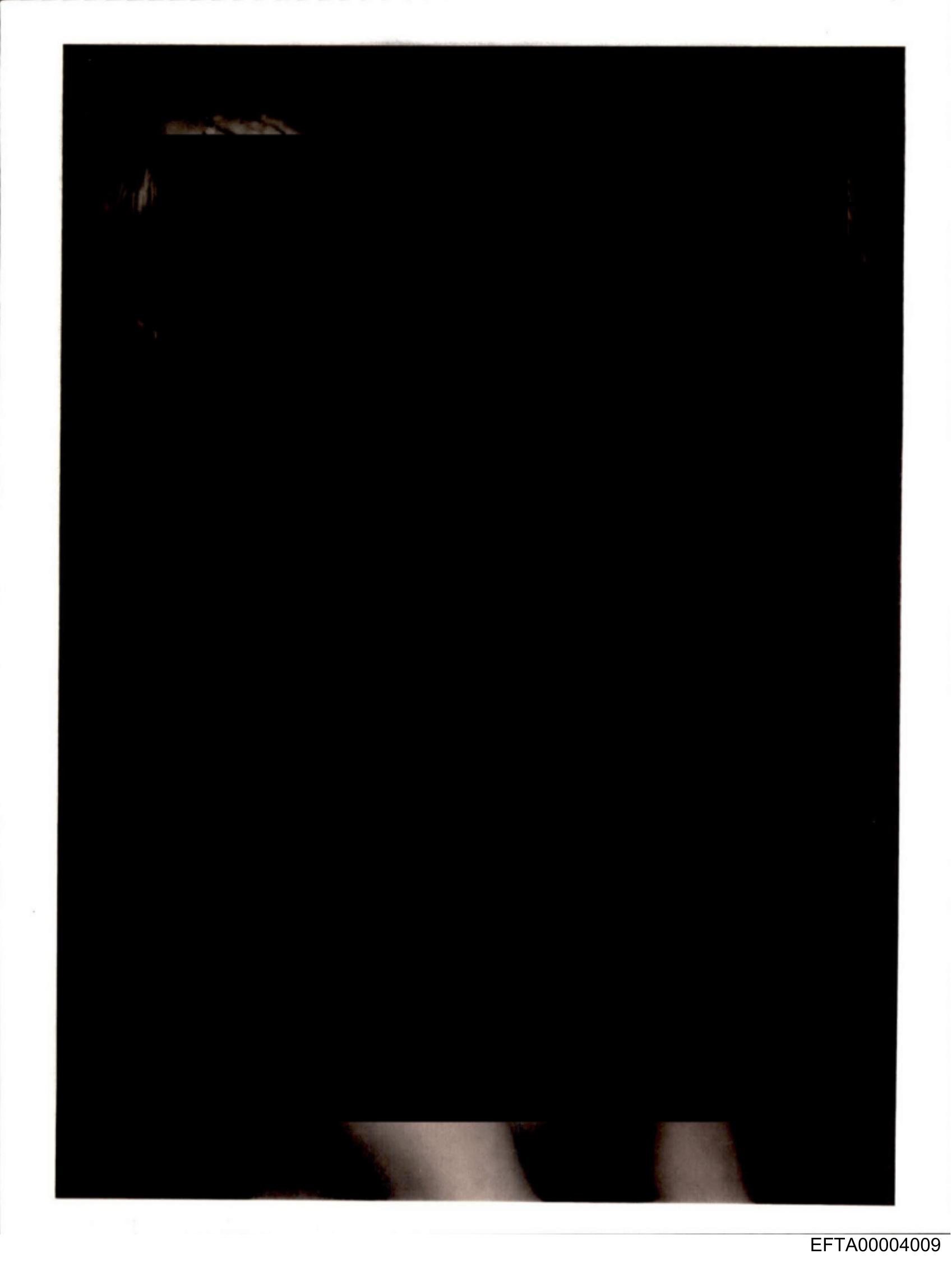 The image appears to be a black and white photograph with a grainy texture. It shows an indistinct human figure, possibly seated, wearing dark clothing that blends into the darkness of the background. The person's face is obscured by shadows or darkness. The photo has a border on all sides, giving it the appearance of being printed on paper or in a digital frame. There are no visible texts or recognizable locations within this image.