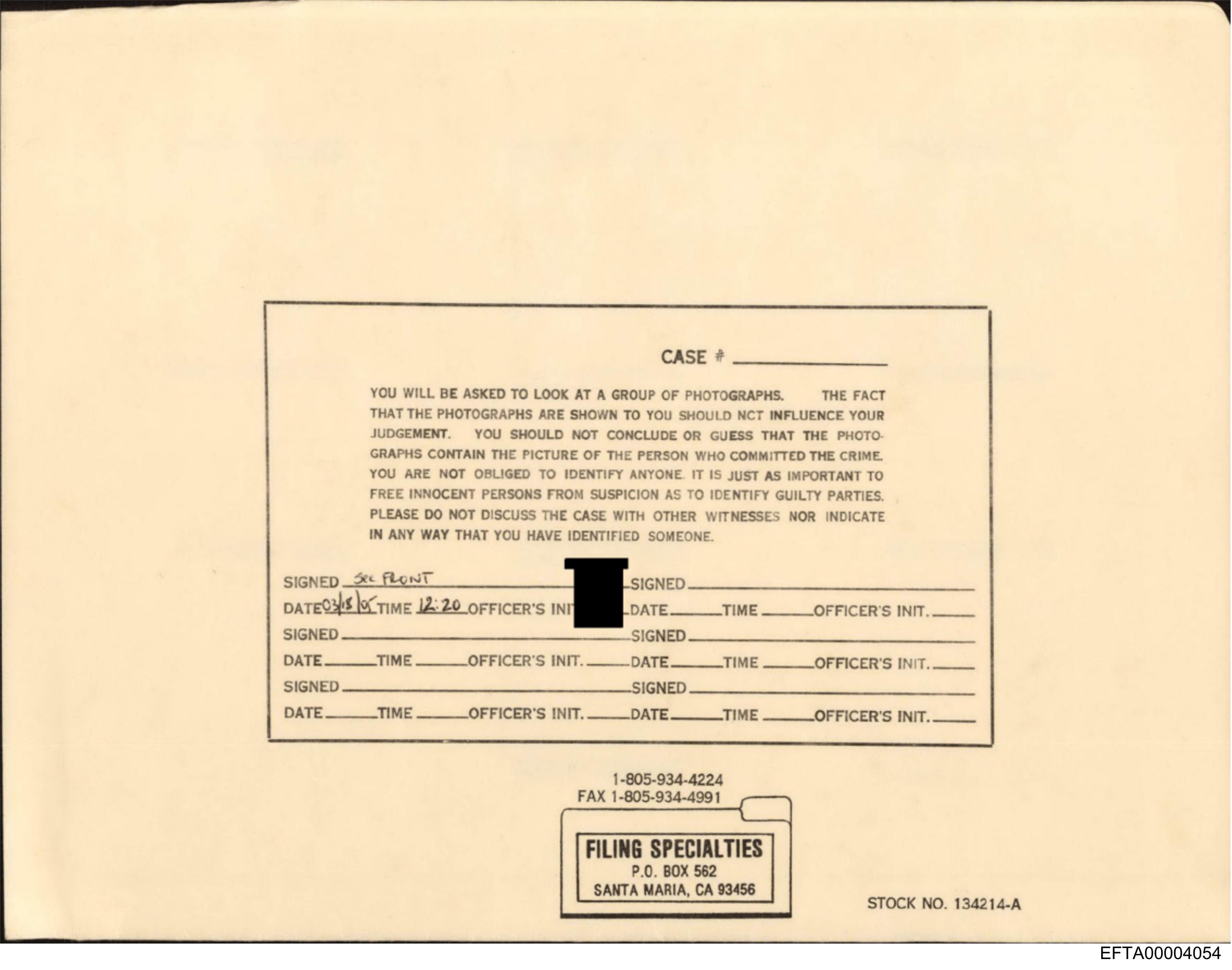 The image shows a printed form with text on it. The text at the top of the page reads "Case #" followed by some numbers that have been redacted for privacy. There's a section titled "REPORT OF INCIDENT" which includes fields such as "Date," "Time," and "Officers Name." Below this, there is information regarding an incident that mentions a "1982 Ford F-150" and a "1976 Buick Regal." The form appears to be related to law enforcement or insurance claims involving vehicles. At the bottom of the page, there's additional text that says "FILM SPECIALITIES" with a handwritten note that includes the numbers "34890 5921" and an illegible word. There are also some redacted parts where personal information would typically be found, ensuring the privacy of the individuals involved in the incident reported on this form.