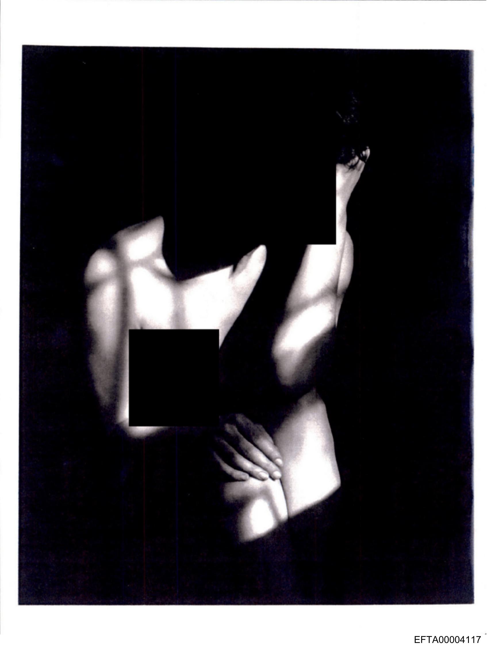 The image appears to be a black and white photograph featuring the torso of a woman from behind.