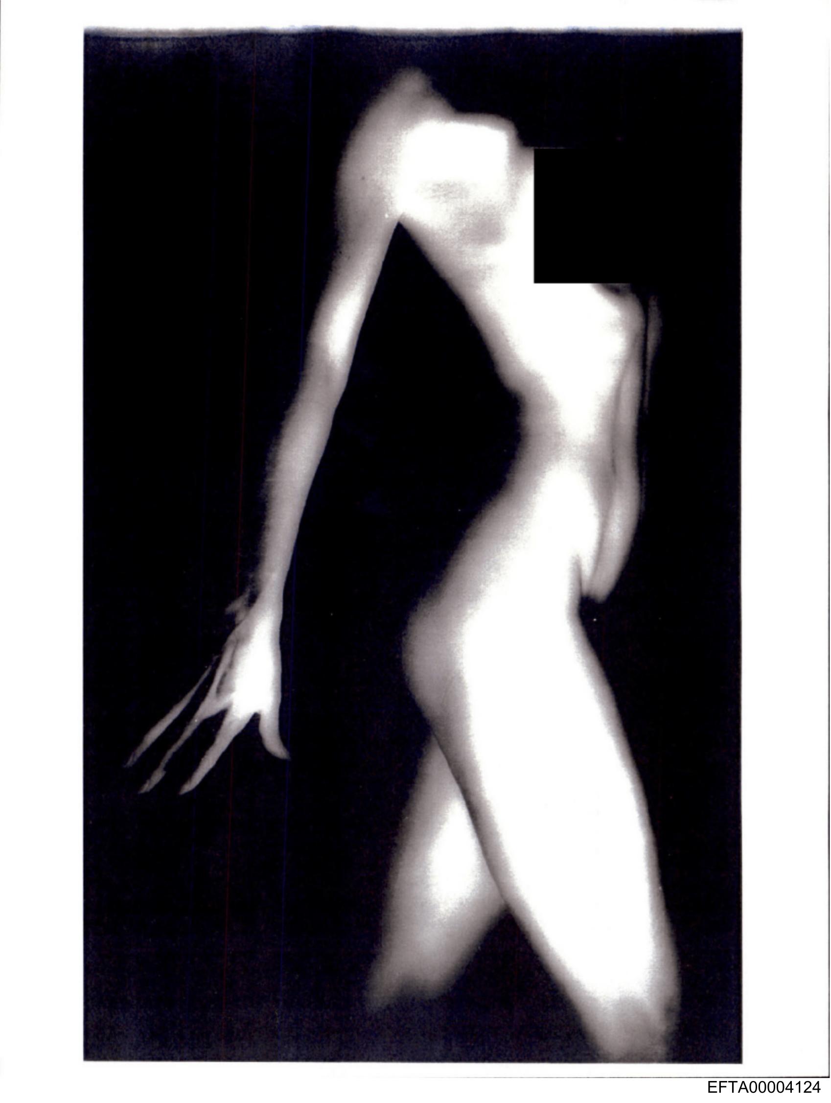 The image is a grayscale photograph featuring an isolated human figure against a dark background that appears to be filled with indistinct shapes and forms, possibly suggesting movement or chaos around the central figure. The person depicted has their back turned towards the viewer, revealing a slender form with distinct muscle definition along the arms and spine. The head is cropped from the frame, further emphasizing the focus on the figure's body. There are no visible texts or identifiable locations in this image. The style of photography suggests a minimalist approach with selective focus on the human subject.