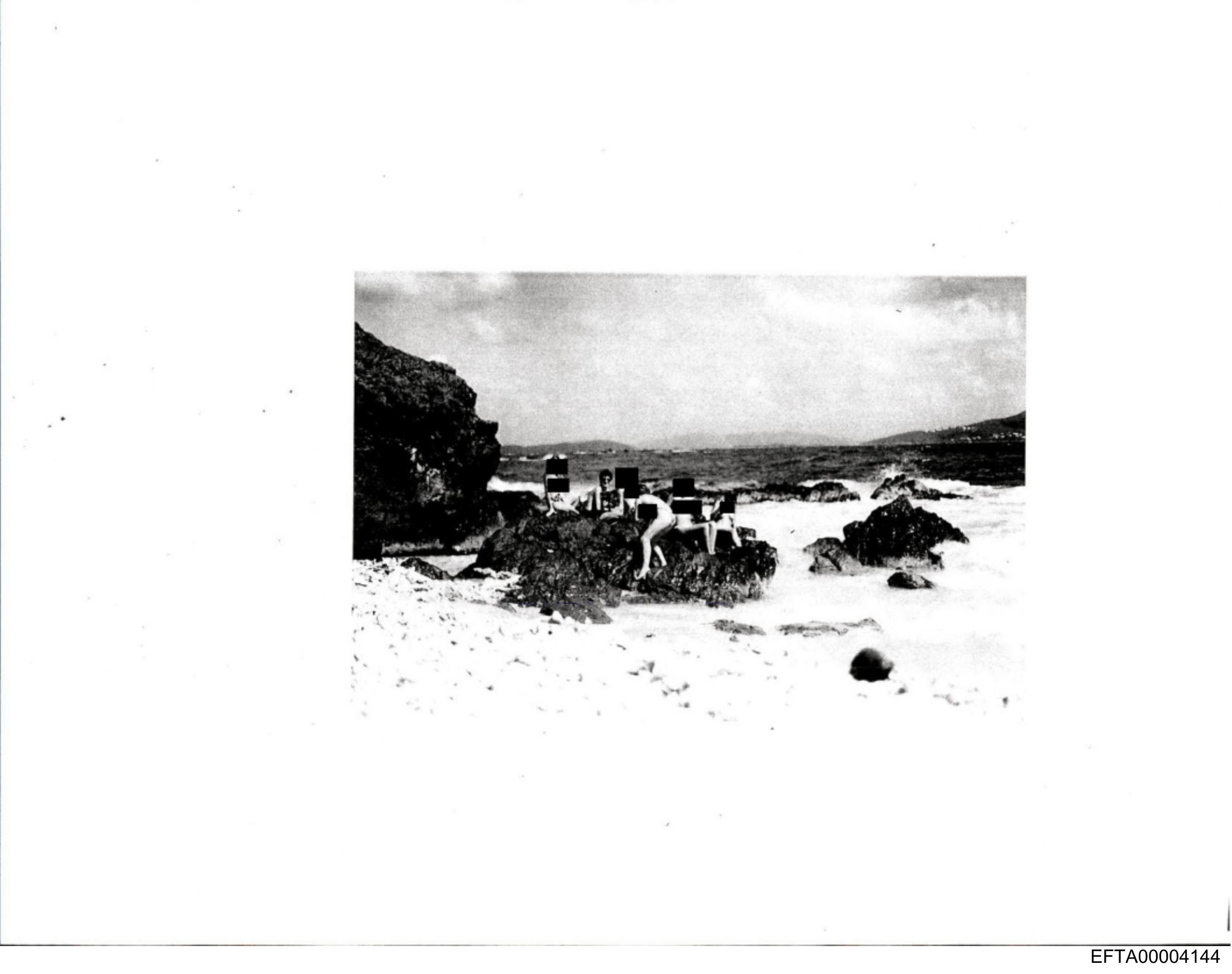 The image shows a vintage photograph with faded colors of a beach scene.